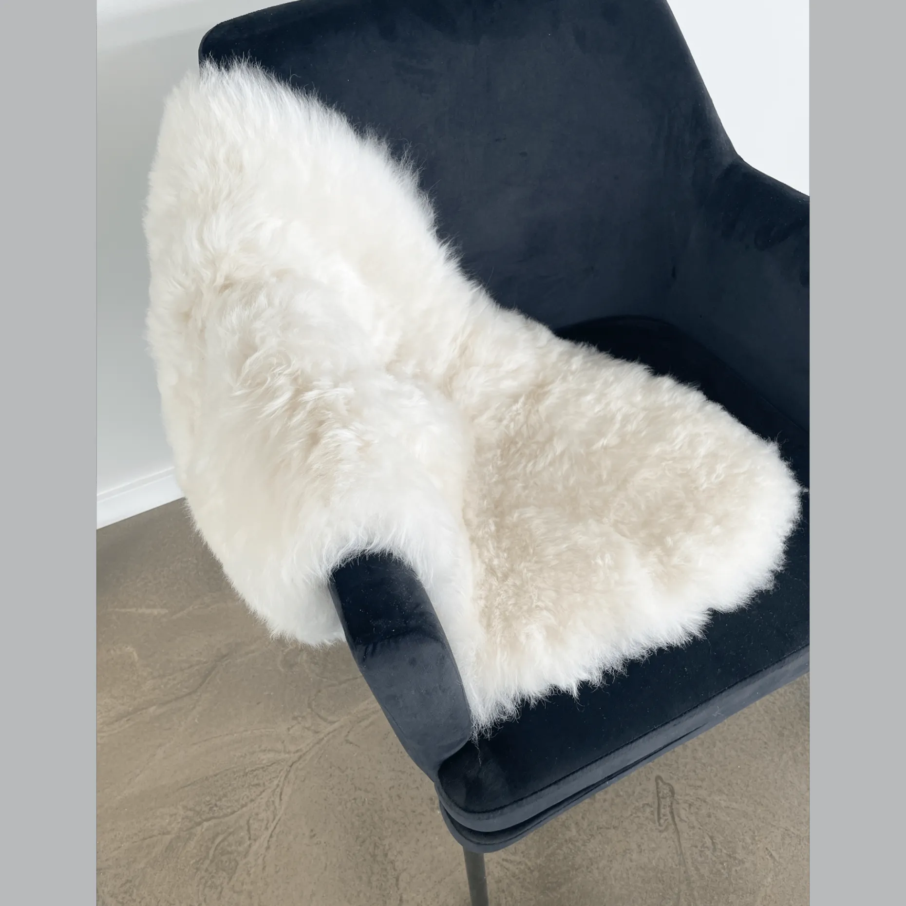 Ægte lammeskind i hvid, 95×65 cm. Dette luksuriøse og bløde skind tilføjer varme og elegance til dit hjem, perfekt som tæppe, dekoration eller som ekstra komfort på møbler.
