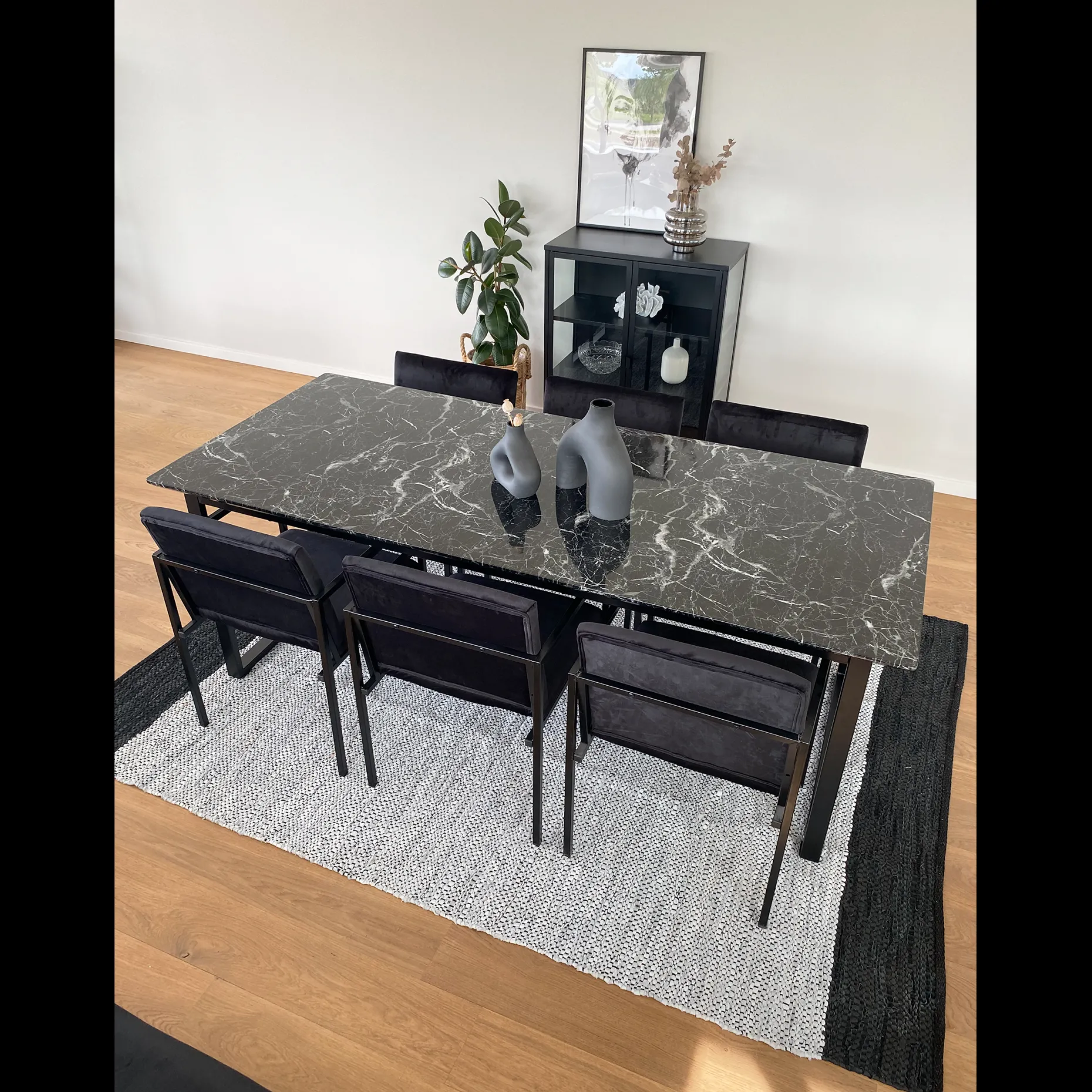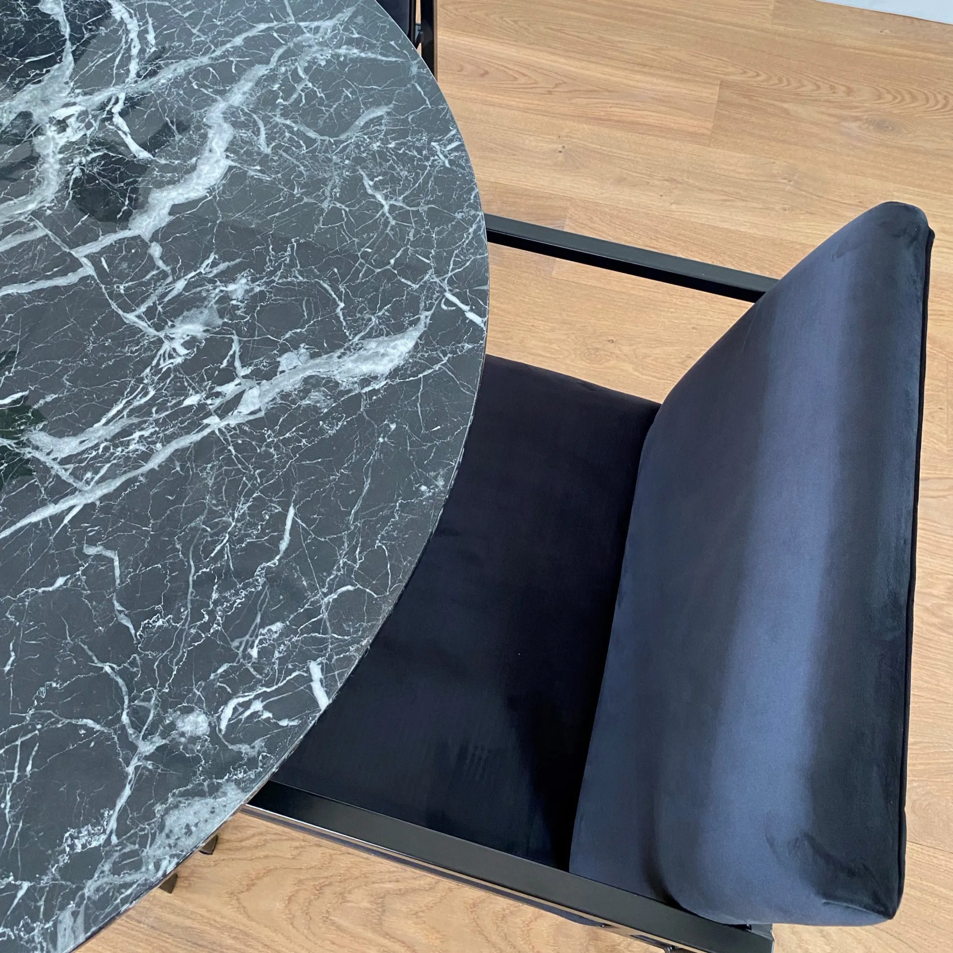 Allie – Minimalistisk Sort velour stol med armlæn