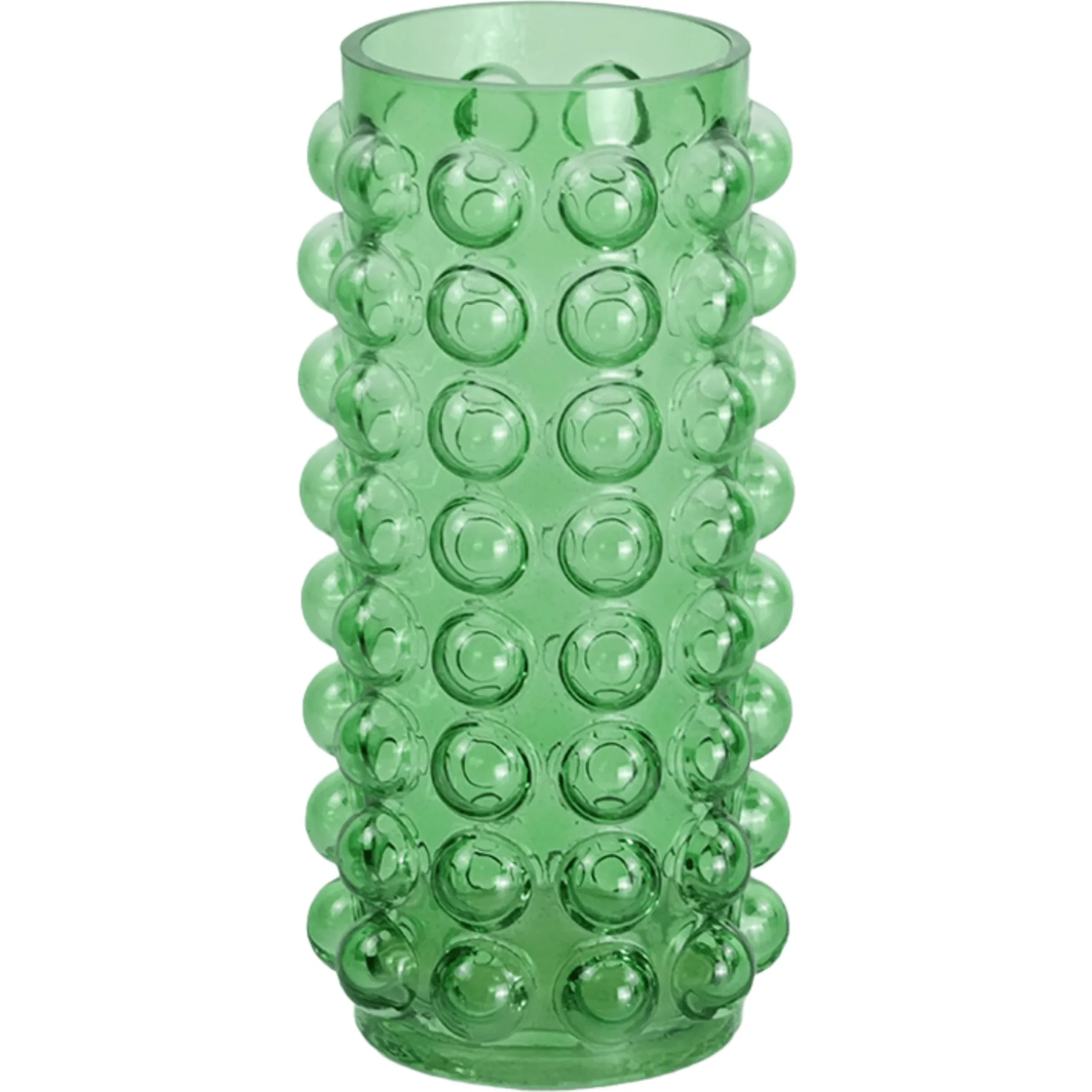 Dekorativ grøn glasvase med bobletekstur