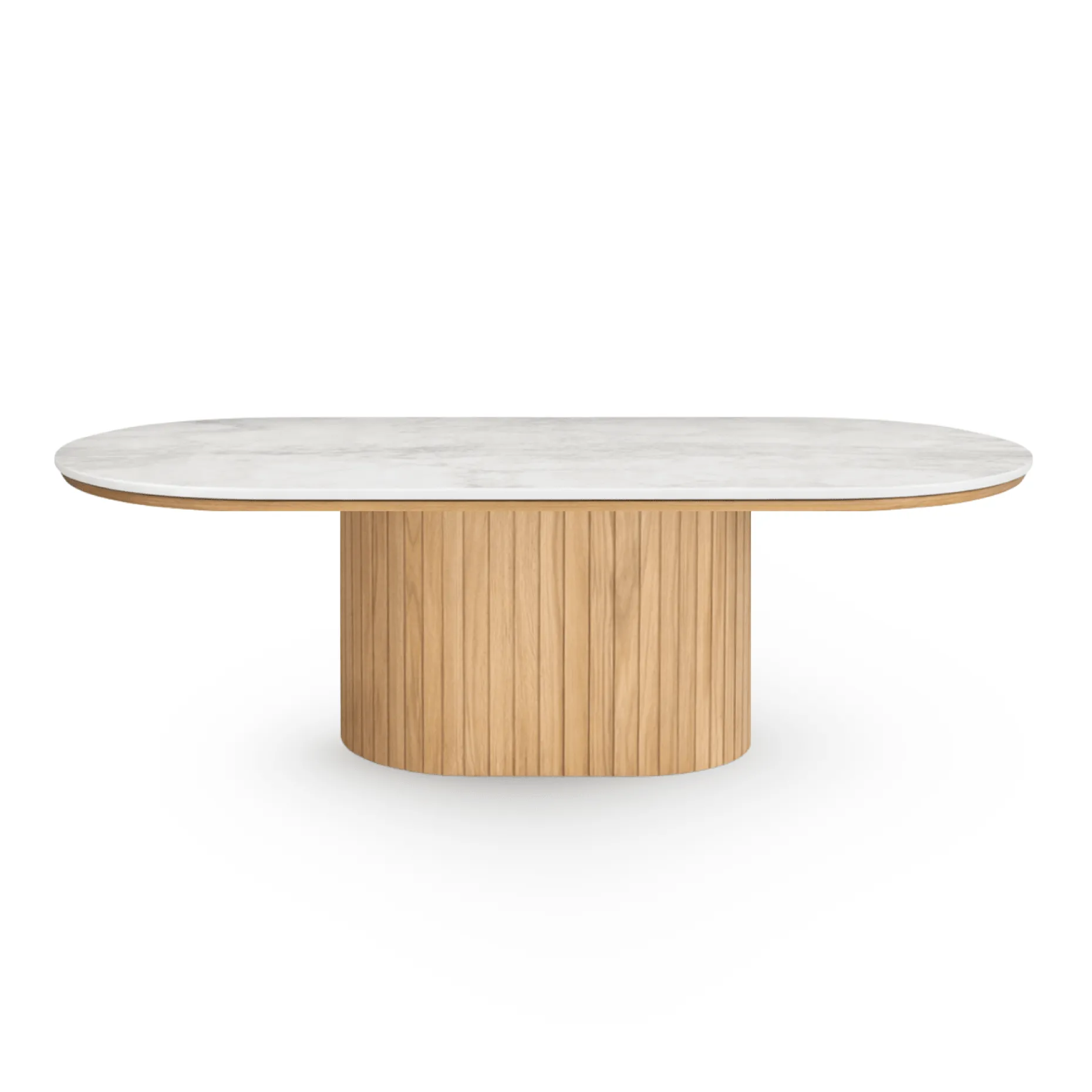 | Materiale | Bordplade: Sintret sten med travertin lookFod: Egetræ |