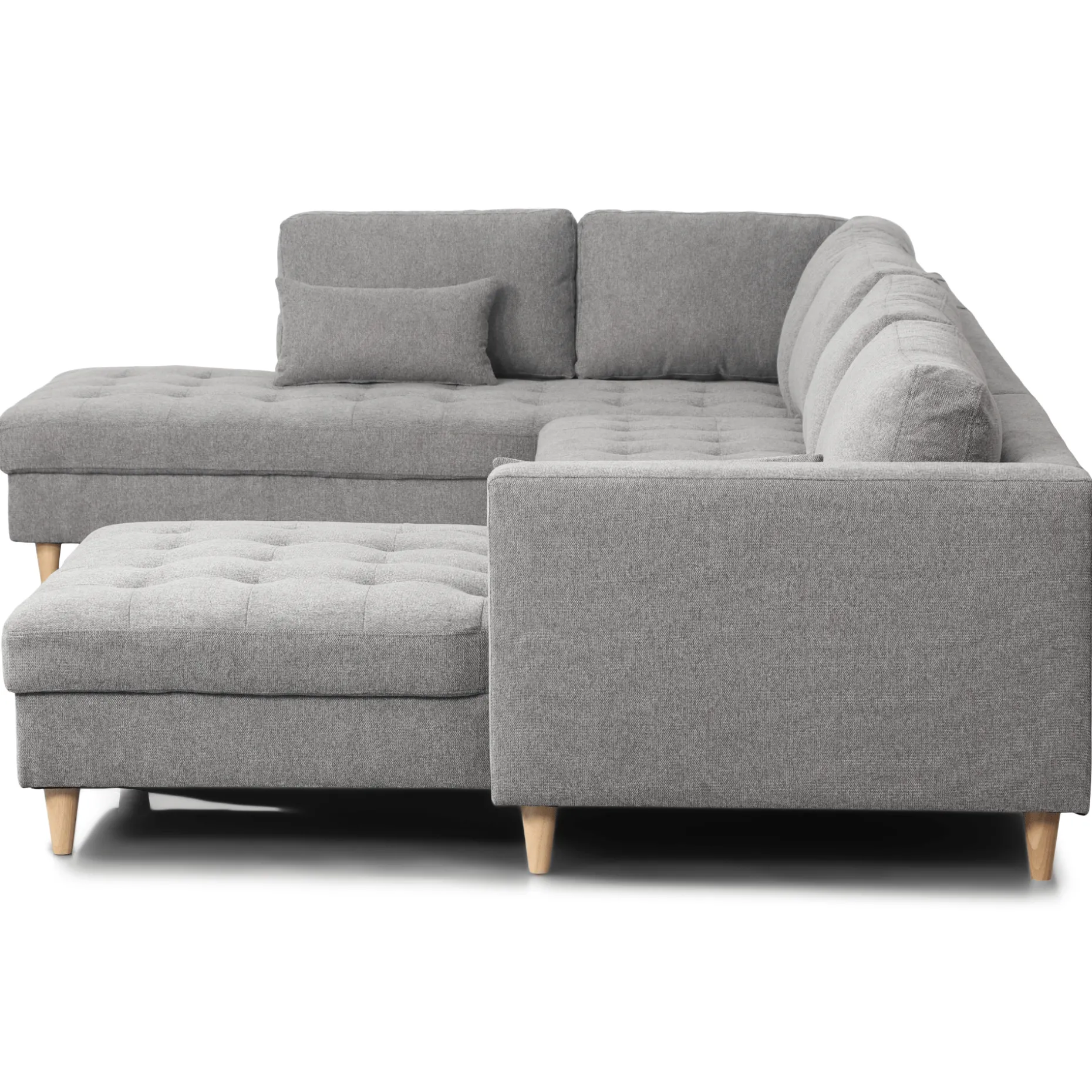 En u-formet sofa, der forener stil og komfort på en enestående måde. Med sit indbydende design og luksuriøse bløde grå materiale bliver Brandy det naturlige midtpunkt i ethvert moderne stueområde.