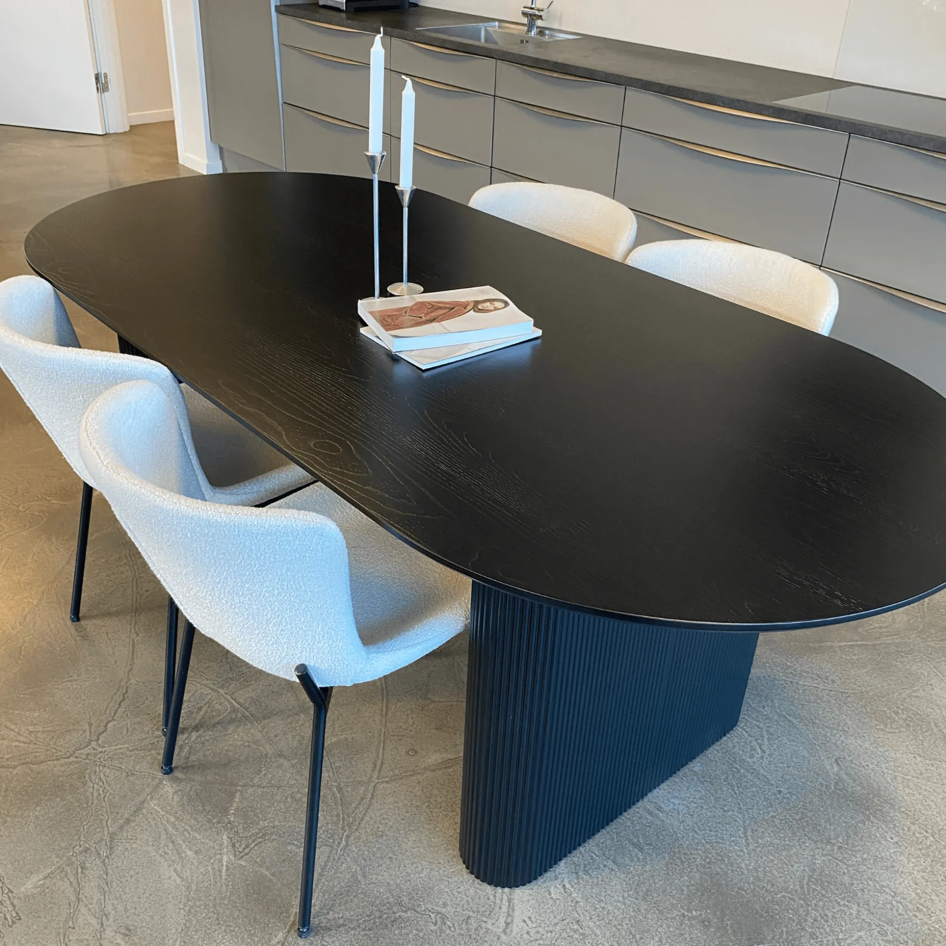 Sort ovalt spisebord
