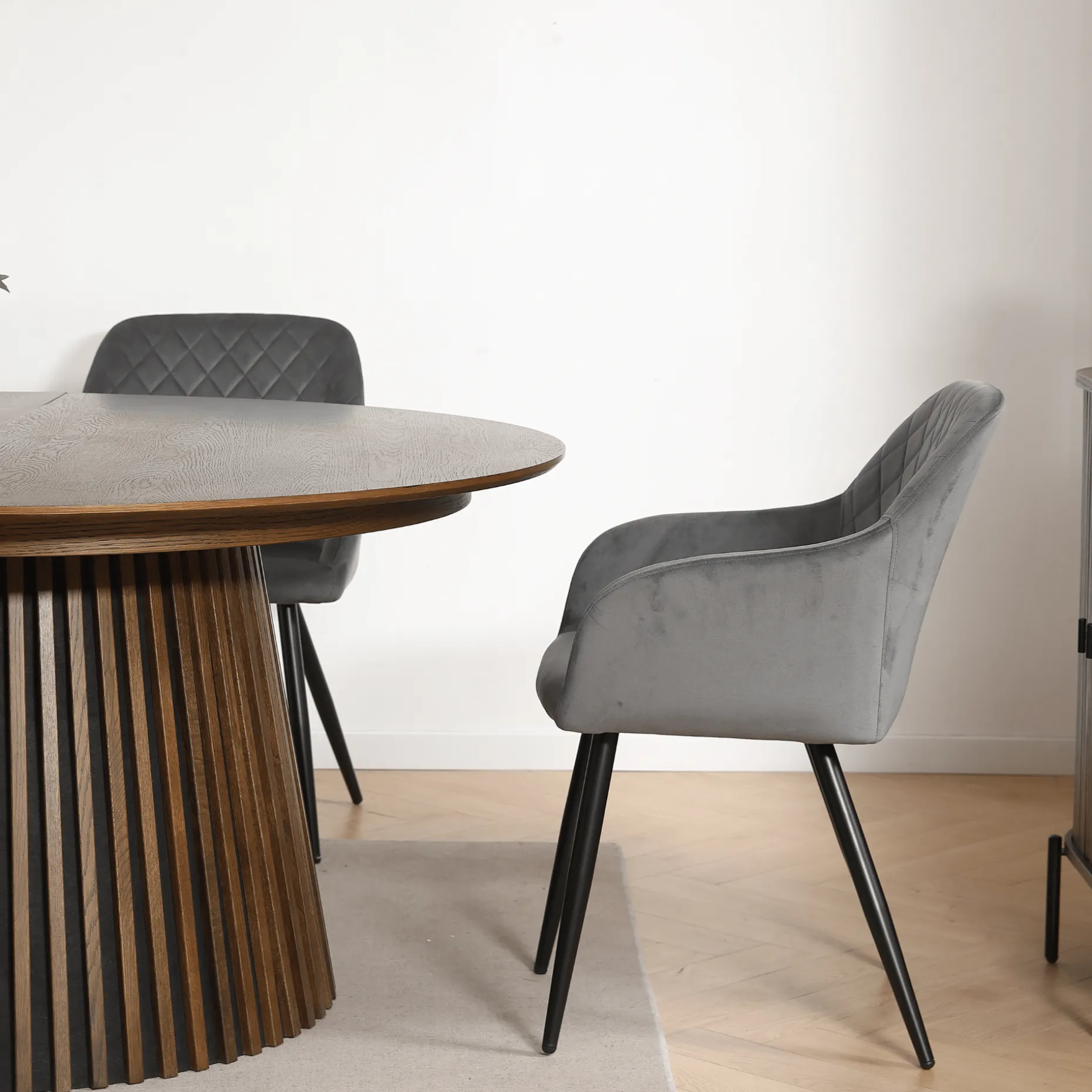 Carlo – Grå velour stol med armlæn