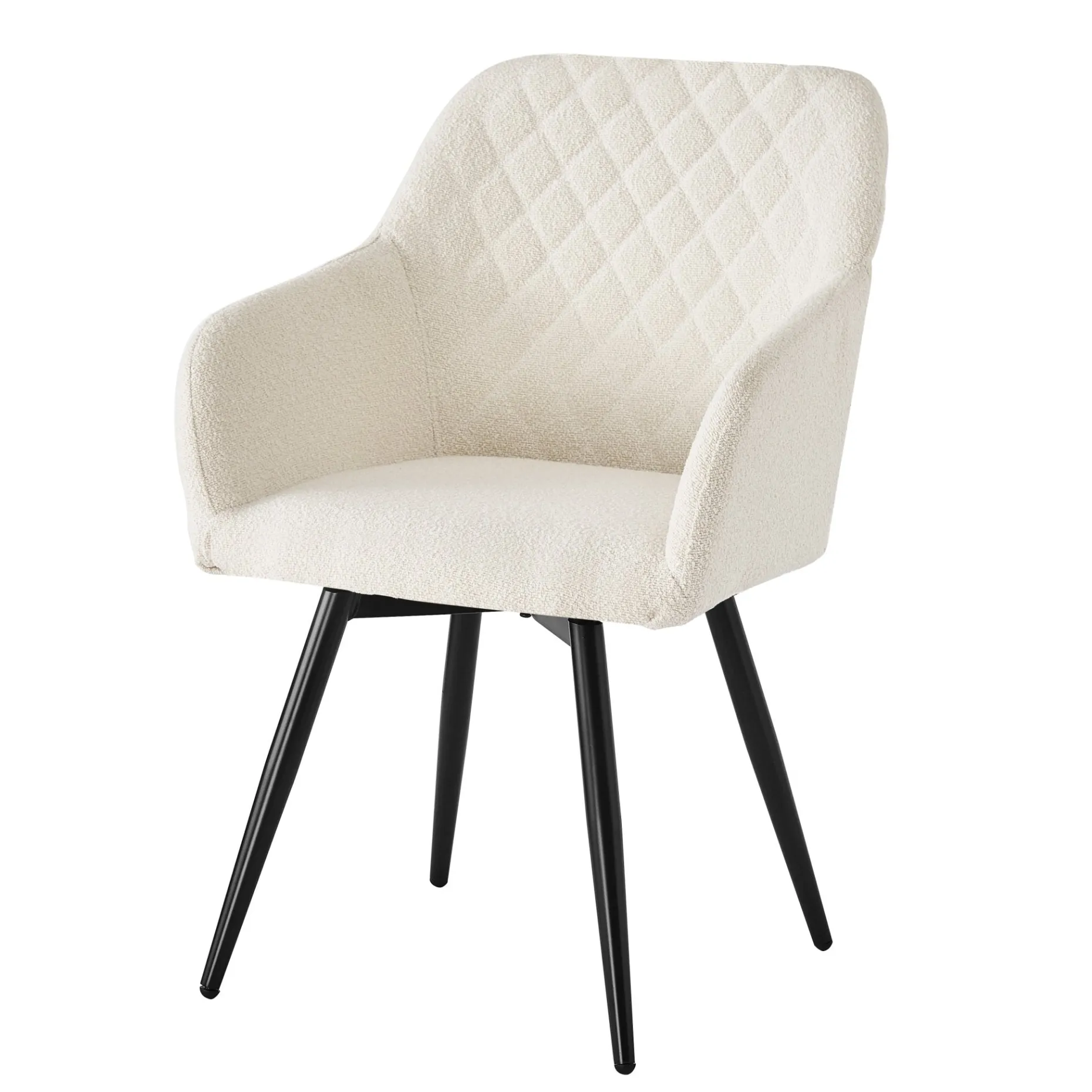 Carlo er en helt unik, rummelig og flot spisebordsstol med armlæn. Stolen er lavet af boucle og matte pulverlakeret ben, hvilket der sammen med størrelsen på stolen, gør den virkelig alsidig og både kan bruges som spisebordsstol, loungestol eller lænestol til stuen. Stolen er ydermere godt polstret, hvilket gør at siddekomforten er behagelig og man kan let sidde i mange timer uden at føle ubehag. Her er virkelig tale om en unik stol med armlæn, som ikke findes andre steder til samme pris. Stolen passer til alle vores spiseborde og kan skubbes helt ind under bordet. Carlo stolen kendes for sit flotte velour og god siddekomfort, men nu fås Carlo også i hvid boucle, som bringer varme og hygge ind i den moderne stil.