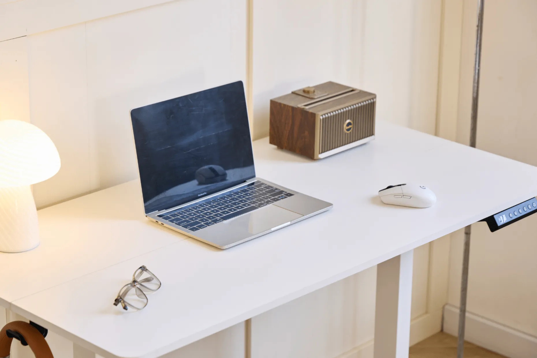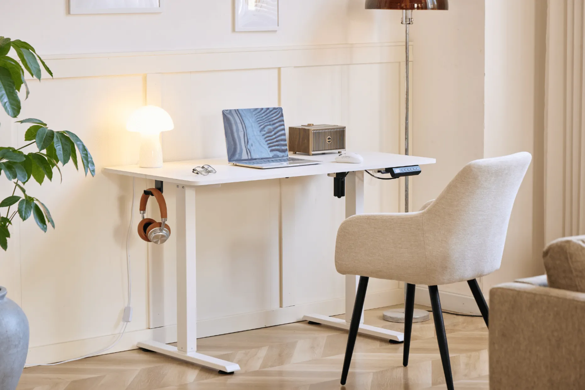 Med den støjsvage elektriske motor kan du nemt justere højden med et tryk på betjeningspanelet. Bordet justeres fra 72 til 117 cm i højden, men har også en memory funktion, hvor den husker dine 3 favorit højder. Bordet hæves og sænkes med 2 cm i sekundet. Den stabile konstruktion gør, at det står sikkert, også i den højeste position.