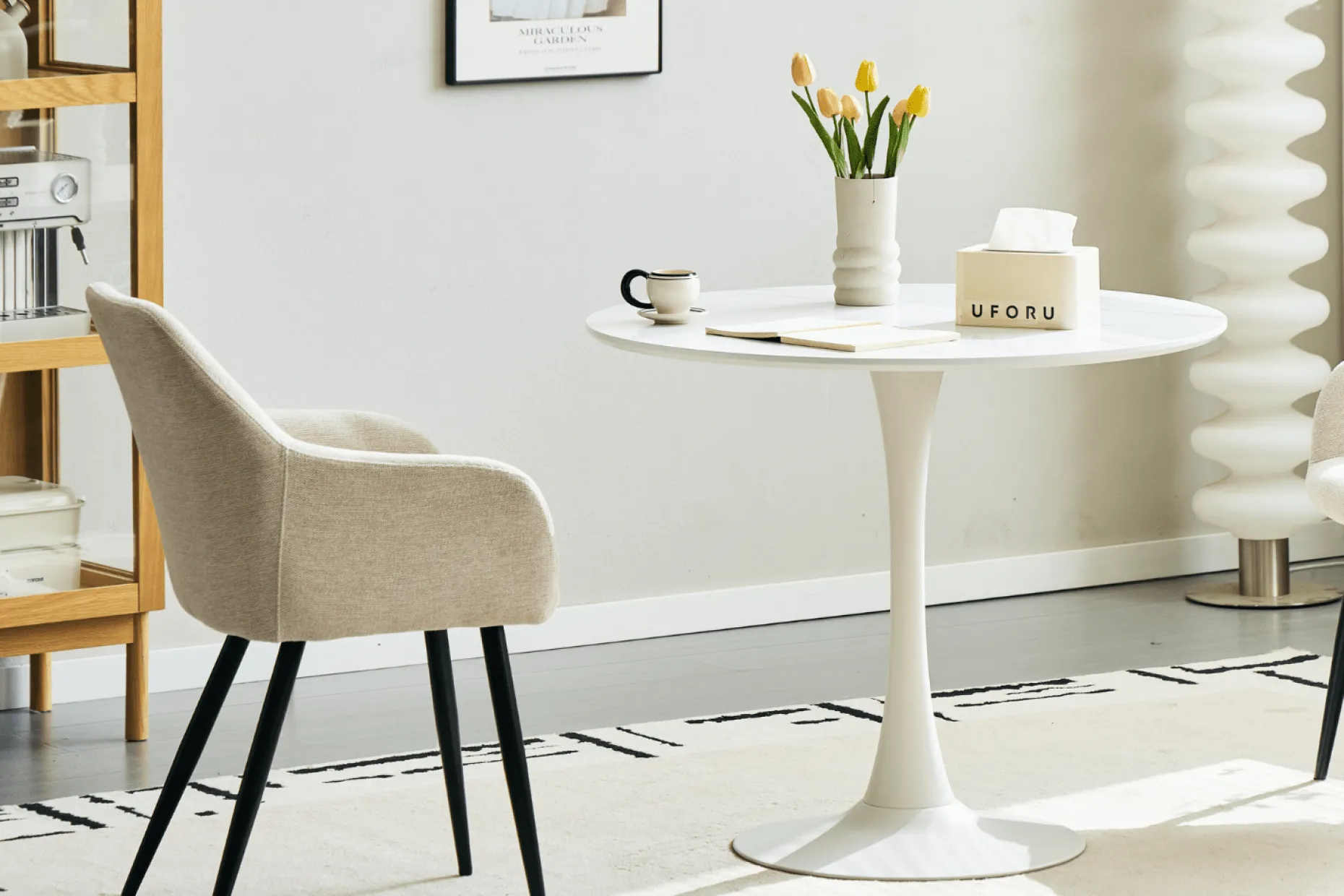 Dette elegante spisebord er det perfekte valg til mindre spisestuer og hjem, der ønsker at tilføje et strejf af luksus og stil. Bordet har en rund bordplade med hvidt marmorlook.
