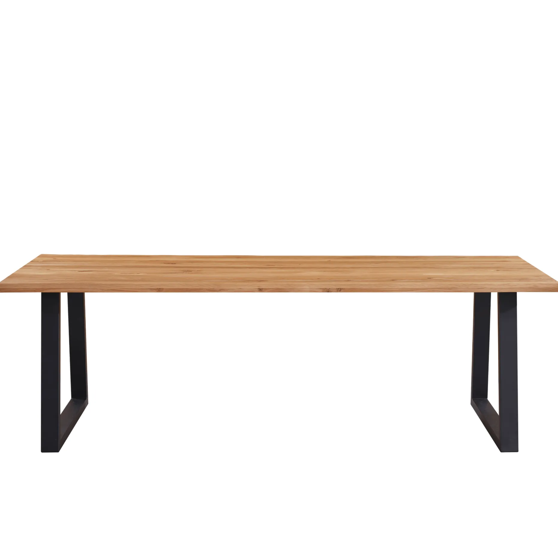 Dette Esther spisebord med 2 planker og sorte firkantet ben i metal måler 200 cm i længden, hvilket giver plads til at have 3 stole stående på hver side.