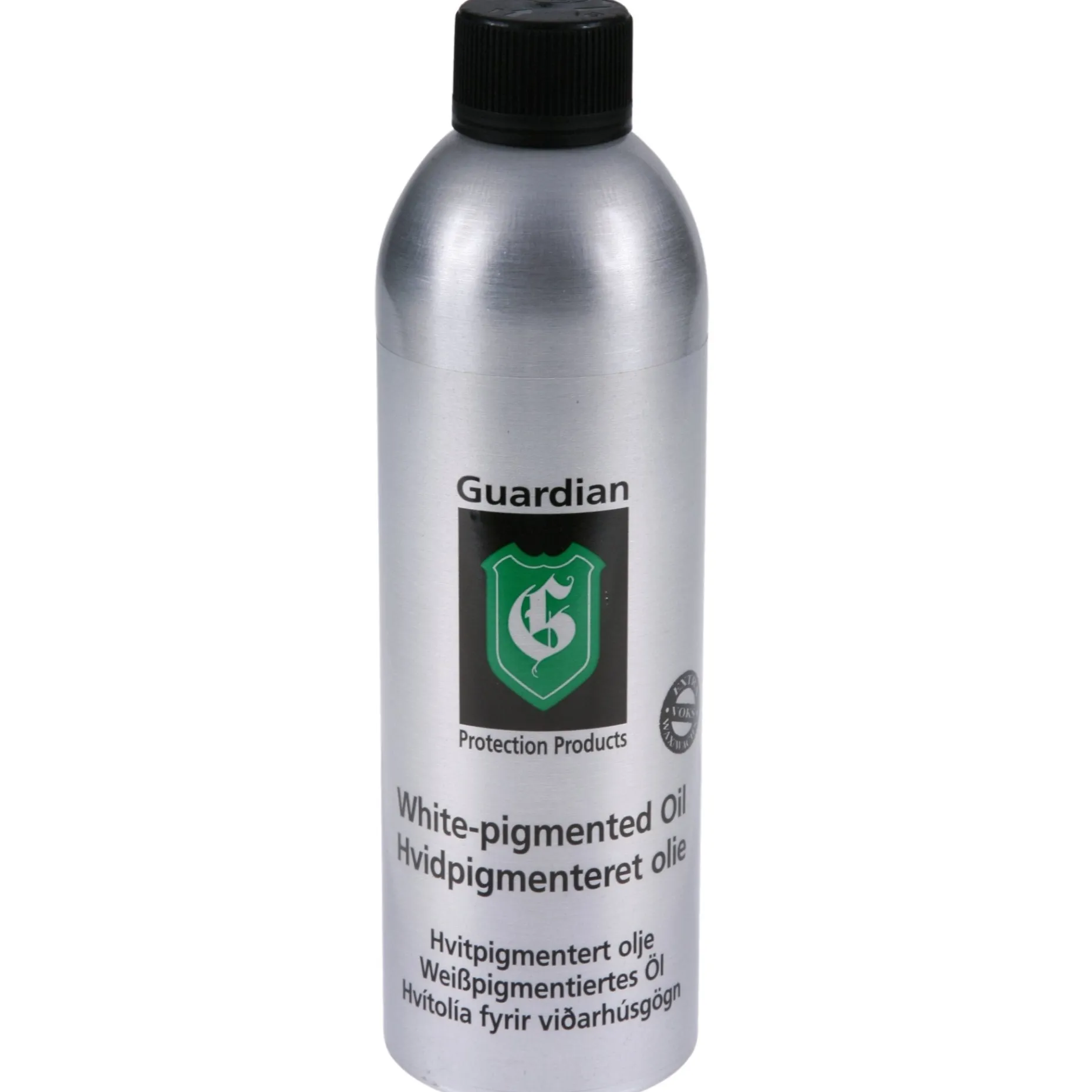 Guardian Hvidpigmenteret Olie anvendes til oliering af ubehandlet træ, hvor der ønskes et hvidt pigment eller til pleje af i forvejen hvidpigmenteret olieret træ. Olien indeholder ingen opløsningsmider og er baseret på de fineste og reneste olier, virker vandafvisende og beskytter træet mod udtørring. Guardian Hvidpigmenteret Olie er testet af Teknologisk Institut og tildelt ”Indeklimamærket”.