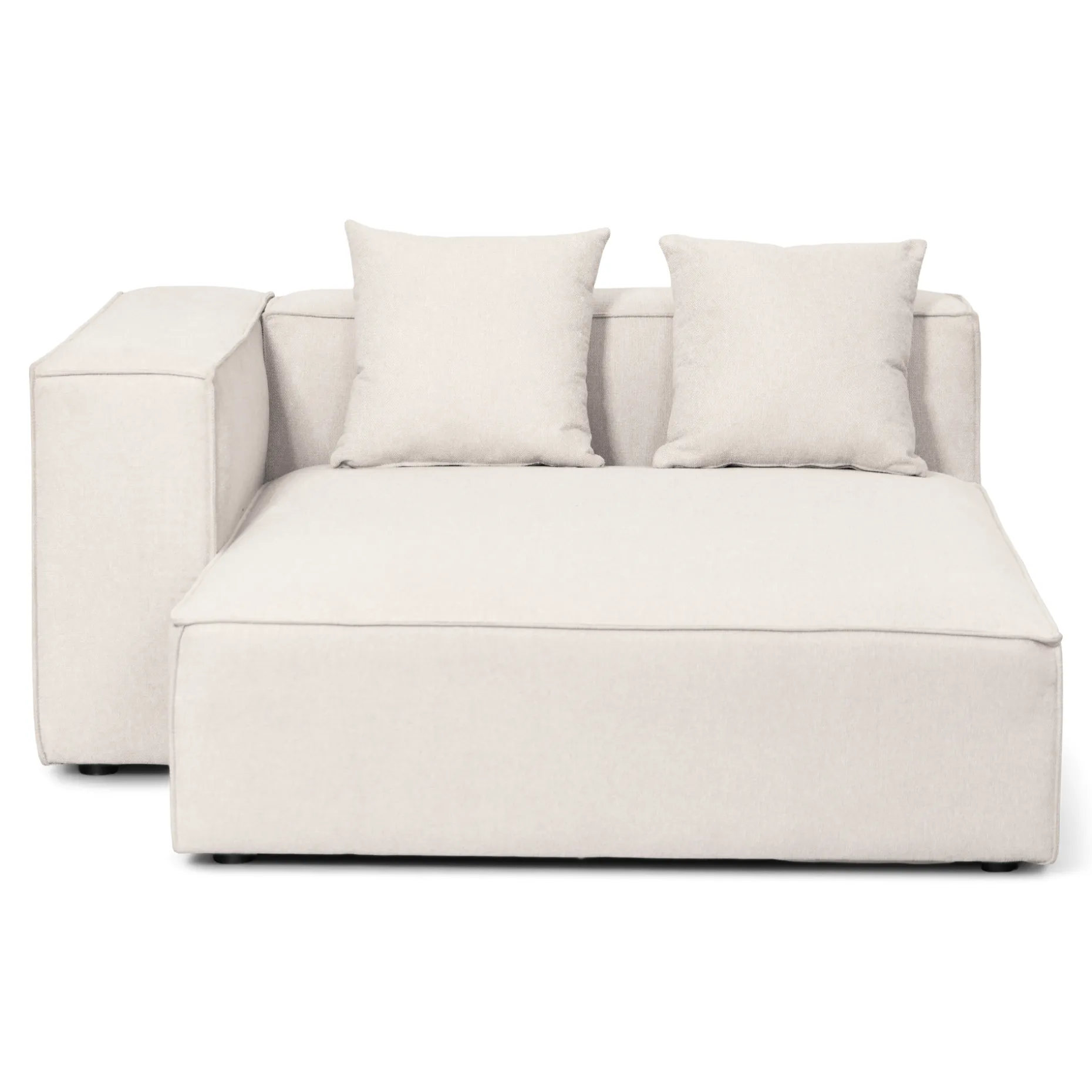 Hailey beige højrevendt chaiselong modulsofa er en sand fryd for øjet og indbyder til afslapning. Den lave og dybe konstruktion gør den perfekt til afslappede stunder. Denne modulsofa, som er en del af vores familie af fleksible modulsofaer, tilbyder en overflod af kombinationsmuligheder. Den består af to moduler: et modul med arm, og et chaiselong modul.