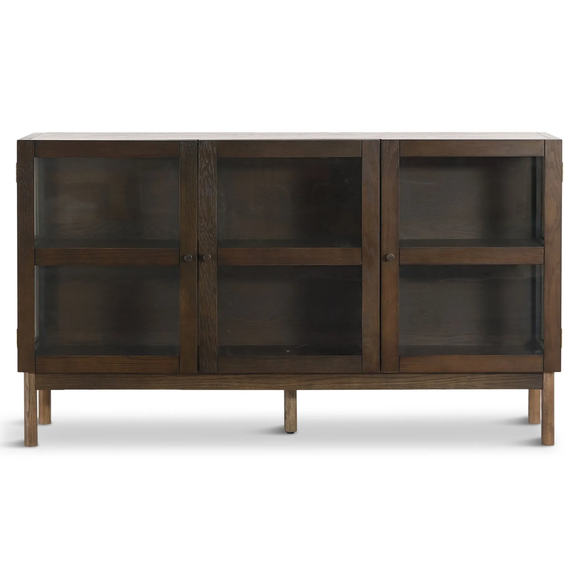 Havana vitrineskabet i røget eg er en flot og praktisk løsning til opbevaring af alt fra glas og porcelæn til dine yndlingspynteting. De tre glaslåger giver et godt overblik over indholdet, mens magnetlukningen sørger for, at lågerne altid lukker ordentligt. Skabet er lavet i røget egetræ, som tilfører varme og karakter til rummet. Med sine mål på 80 x 40 x 140 cm passer det godt ind i både stuen og spisestuen. Det enkle og tidløse design gør, at skabet nemt kan passe ind i alle indretninger.