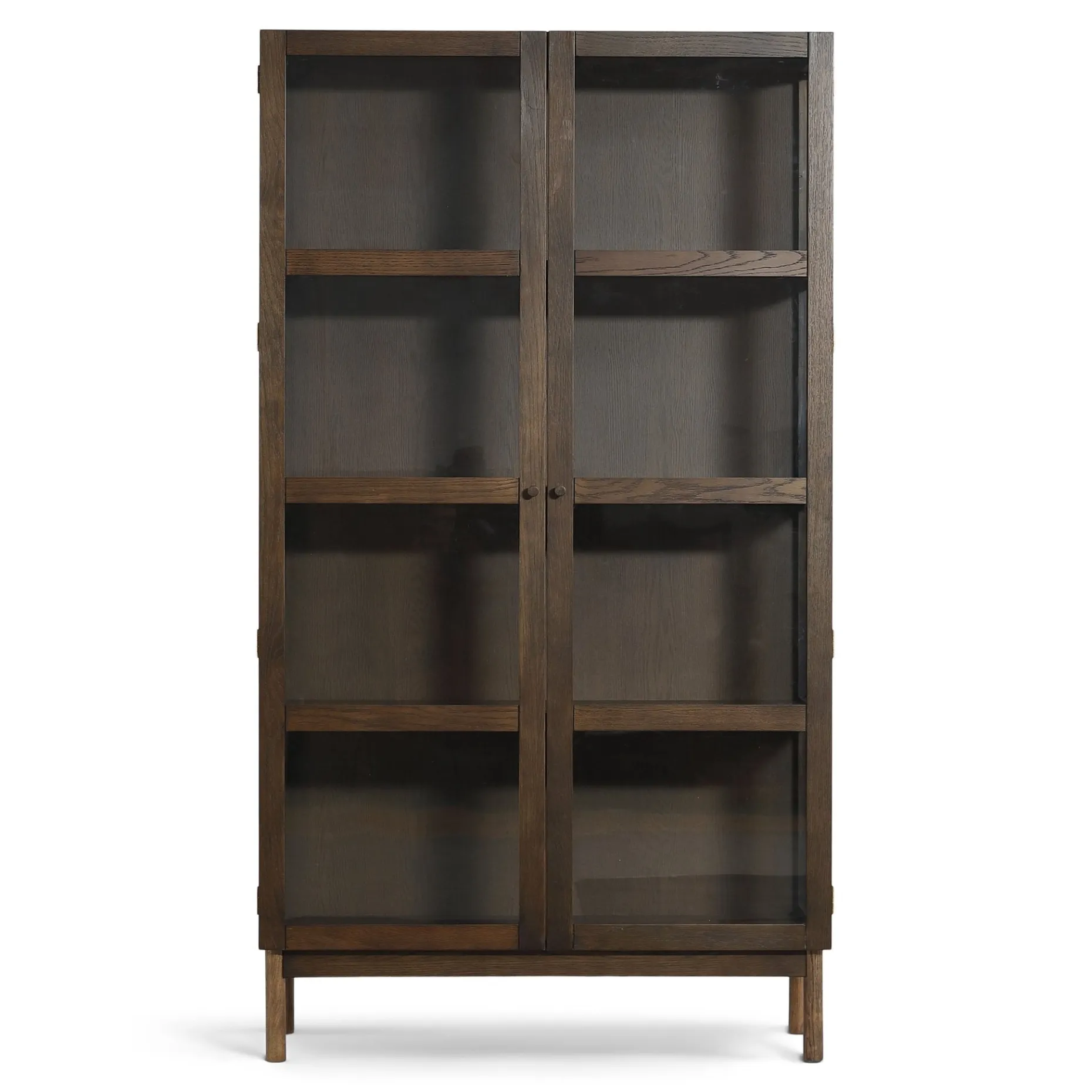 Havana vitrineskab i røget egetræ er en elegant og funktionel løsning til dit hjem. Det tidløse design med glaslåger giver et sofistikeret udtryk og beskytter samtidig dine ejendele mod støv og skader. Med glas vitrineskabe vil du være i stand til at nyde fuld synlighed af dine genstande, samtidig med at de forbliver beskyttet. Skabet måler 180x40x100 cm og er rummeligt, men med en slank silhuet, der passer ind i både moderne og klassiske indretningsstile.