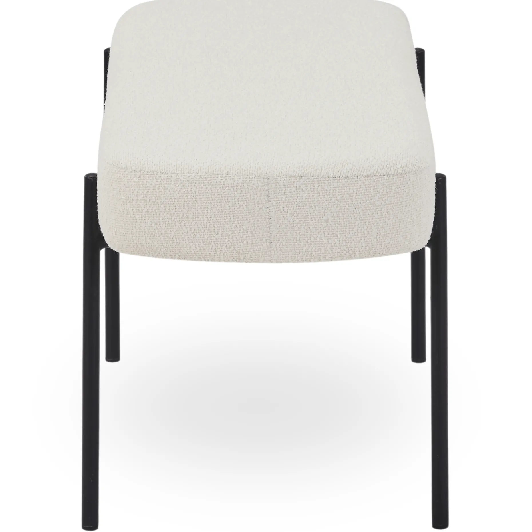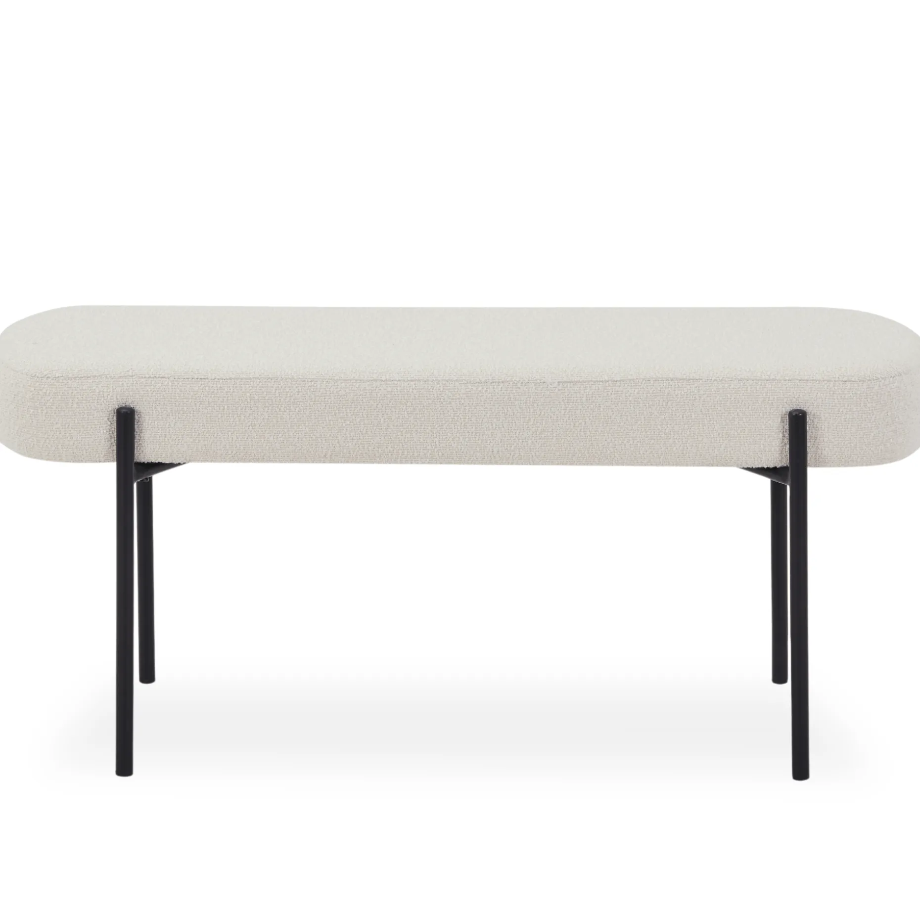 Beklædt i blødt boucléstof og designet med slanke metalben, tilbyder bænken en let og stilfuld æstetik, der passer ind i ethvert rum. Dens minimalistiske udtryk gør den perfekt til brug i entréen, ved foden af sengen eller som ekstra siddeplads i stuen. Bænkens teksturerede overflade skaber et lyst og indbydende look, mens de robuste metalben sikrer stabilitet og holdbarhed.