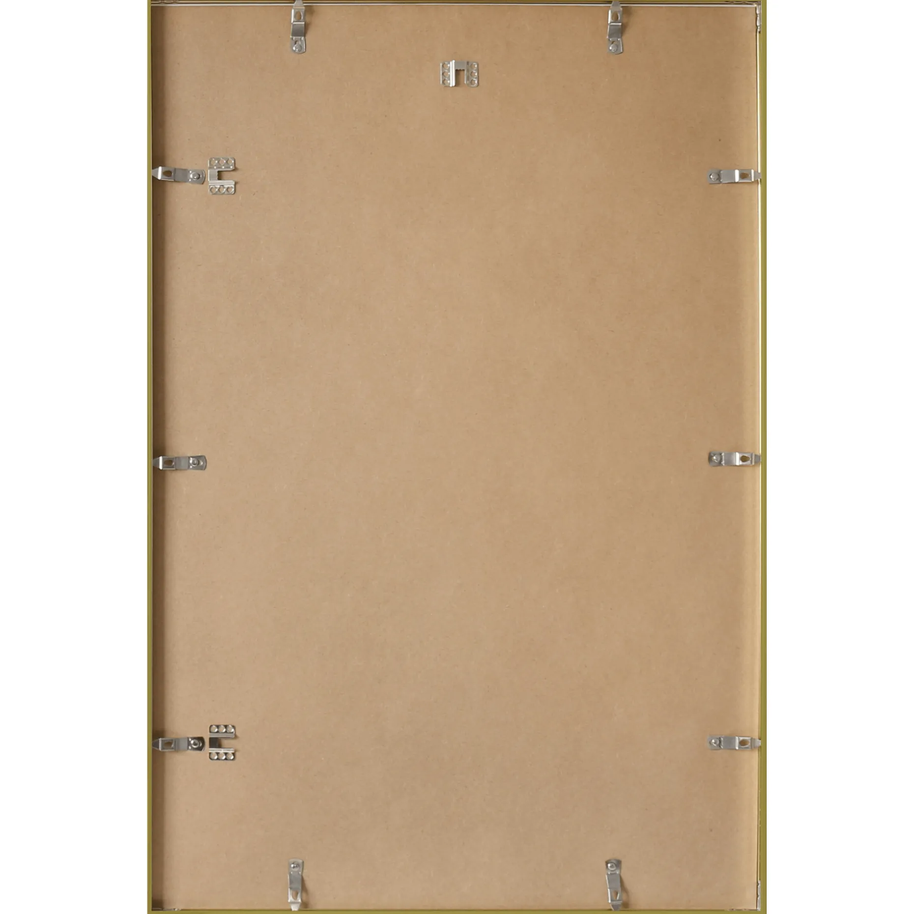 Der er beslag på rammen, så den både kan hænge vandret og lodret.