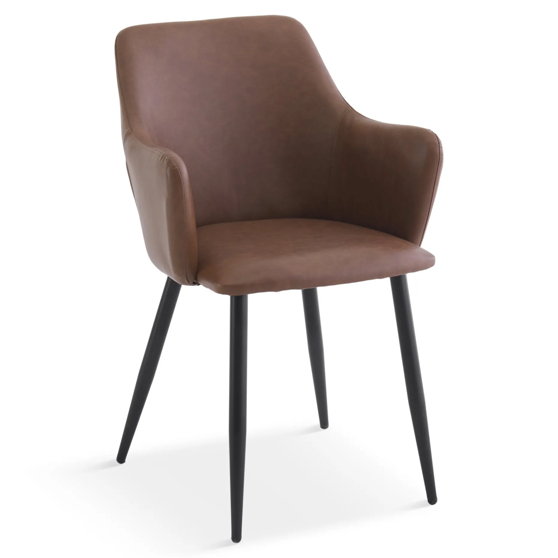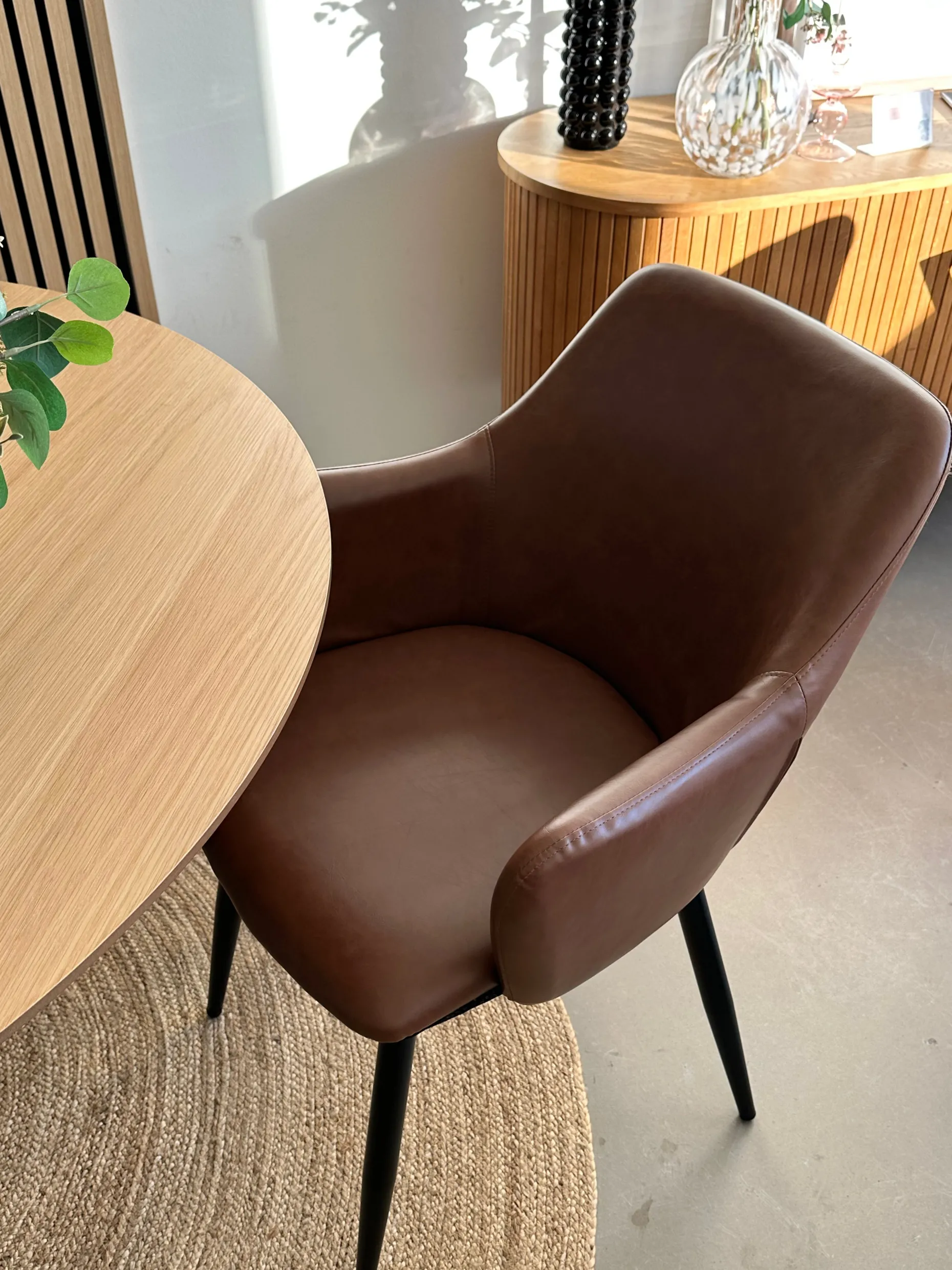 Opgrader din spisestue med vores stilfulde spisebordsstol i brunt kunstlæder. Denne stol kombinerer stil og komfort i et moderne design, der passer perfekt til både daglig brug og særlige lejligheder.