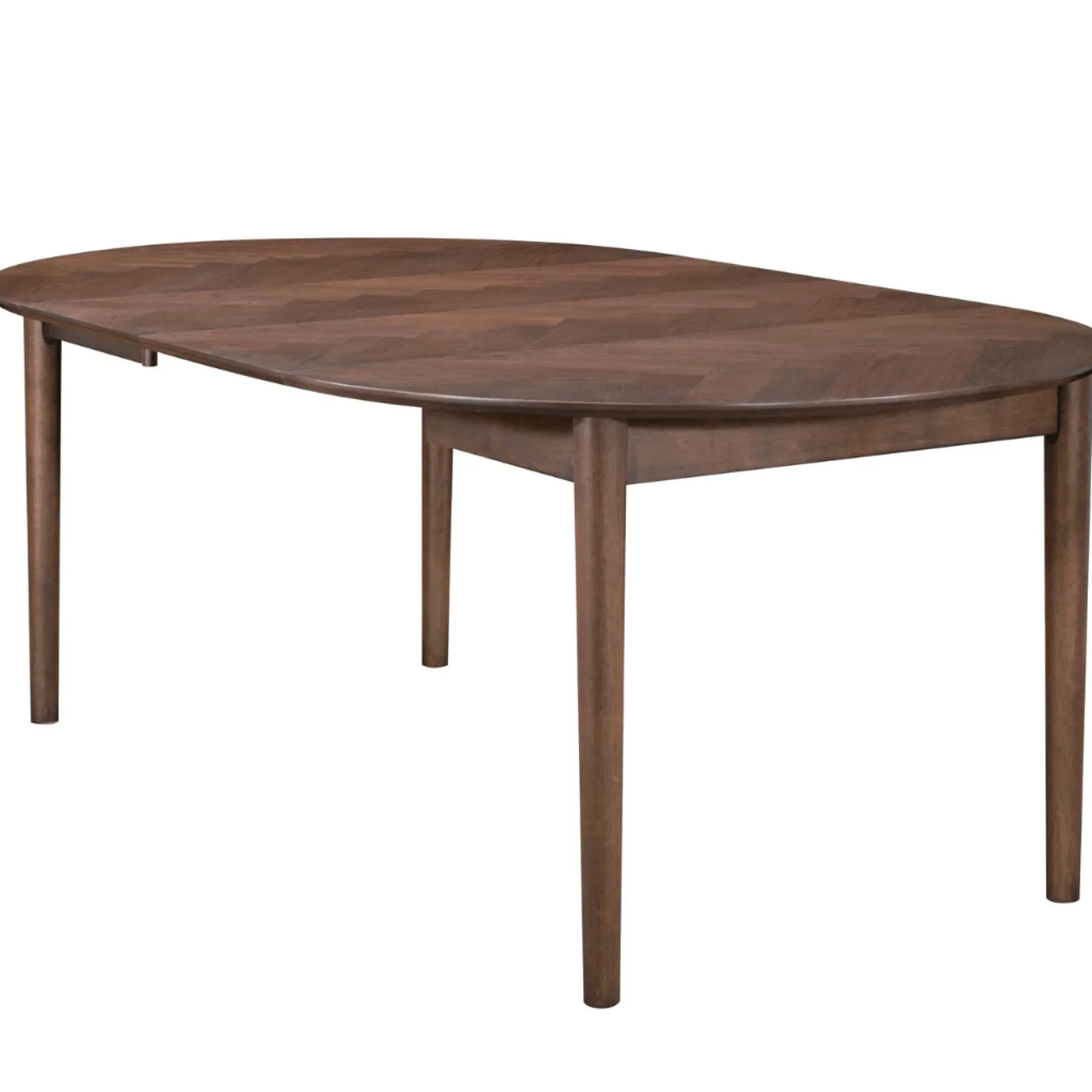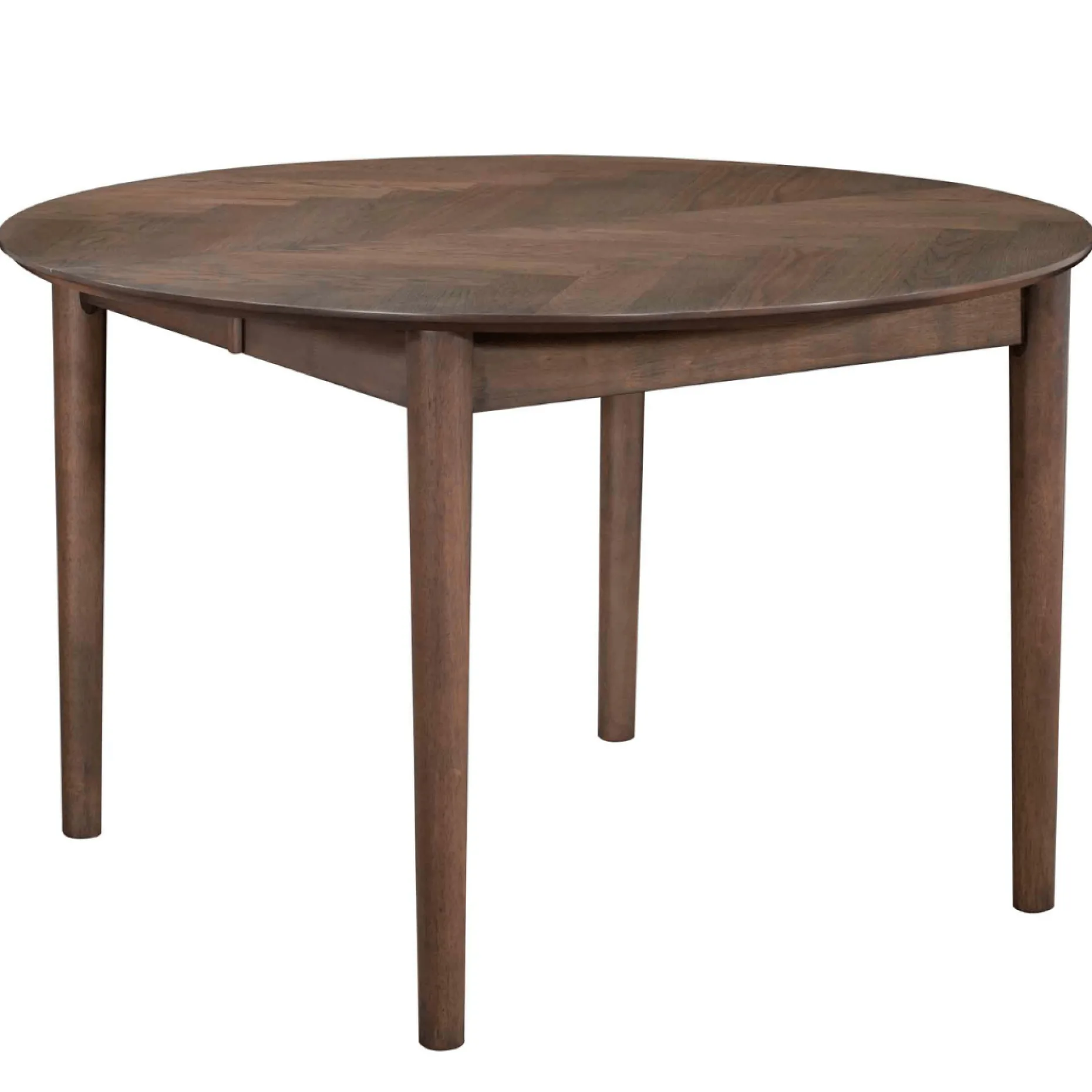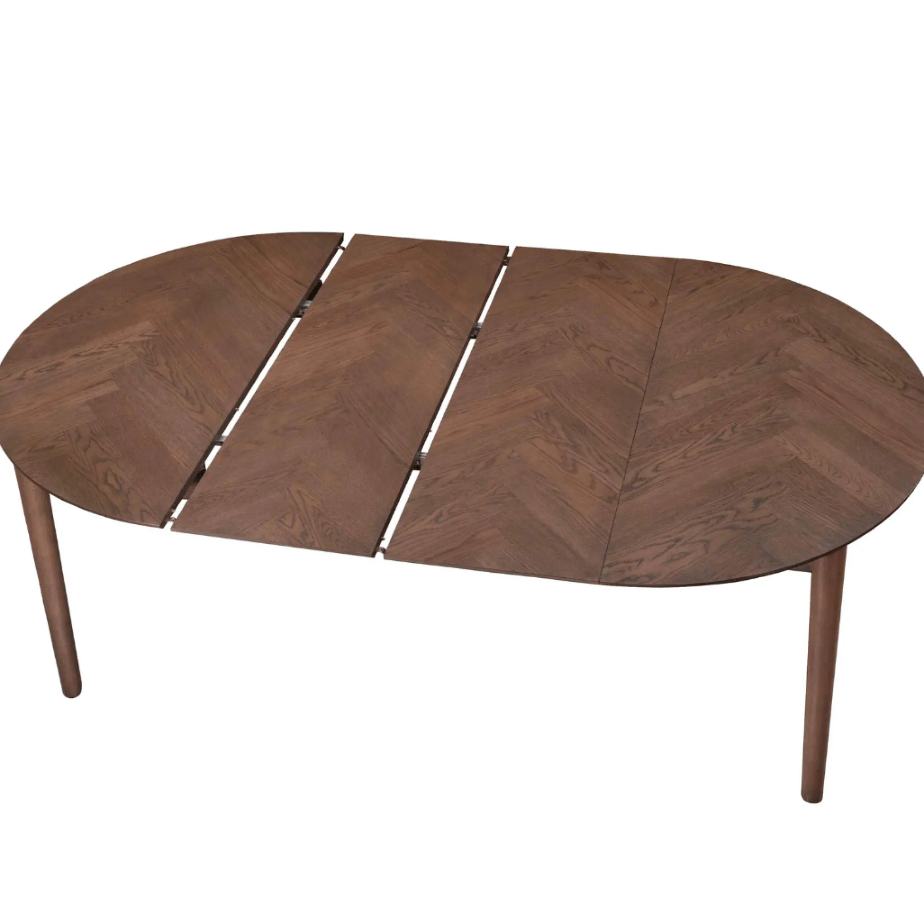 Rundt spisebord med udtræk og sildebensmønster