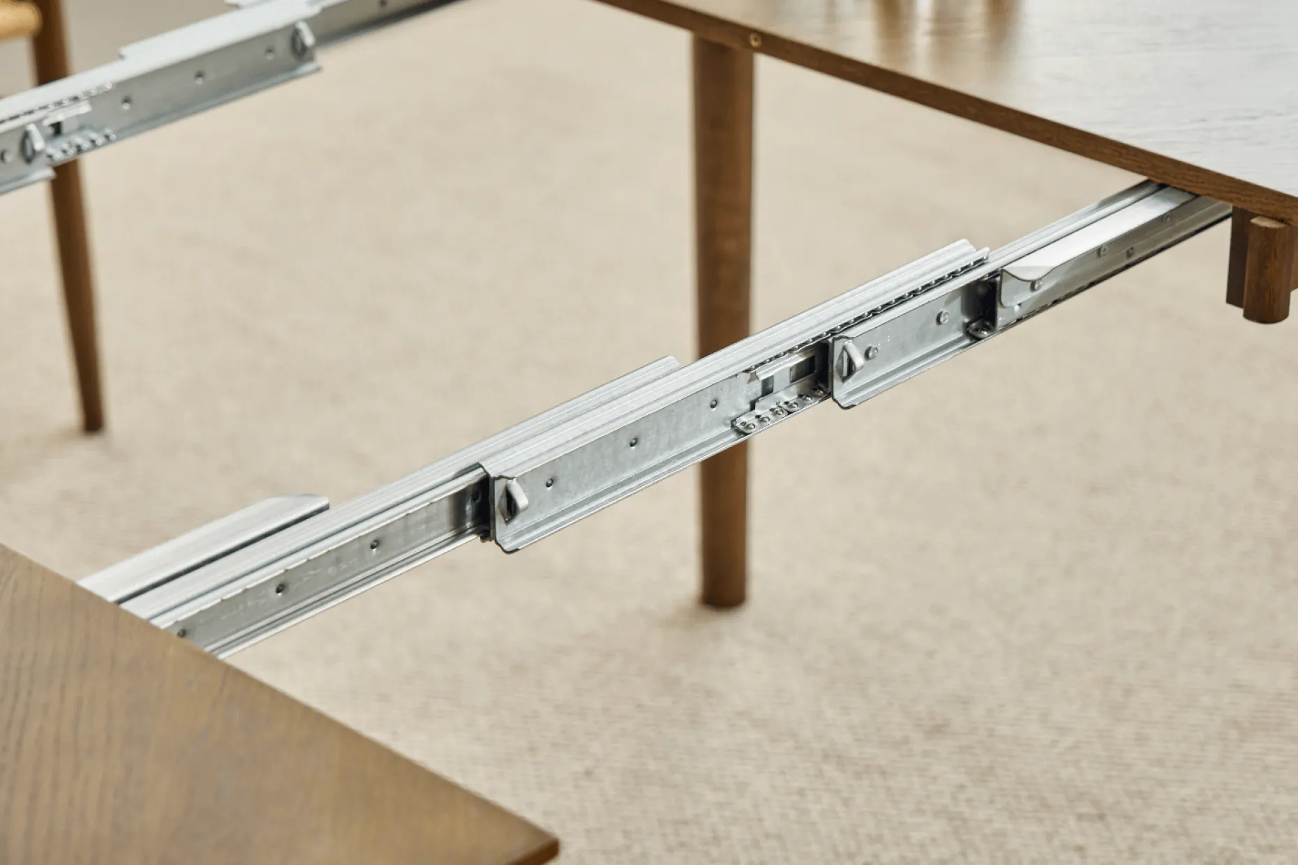 Når du har brug for mere plads, medfølger to tillægsplader, som hver måler 40 cm. Du kan tilføje én eller begge plader og dermed udvide bordet til enten 160 cm eller 200 cm. En praktisk løsning til middage, fødselsdage og andre begivenheder, hvor der er behov for lidt ekstra plads.