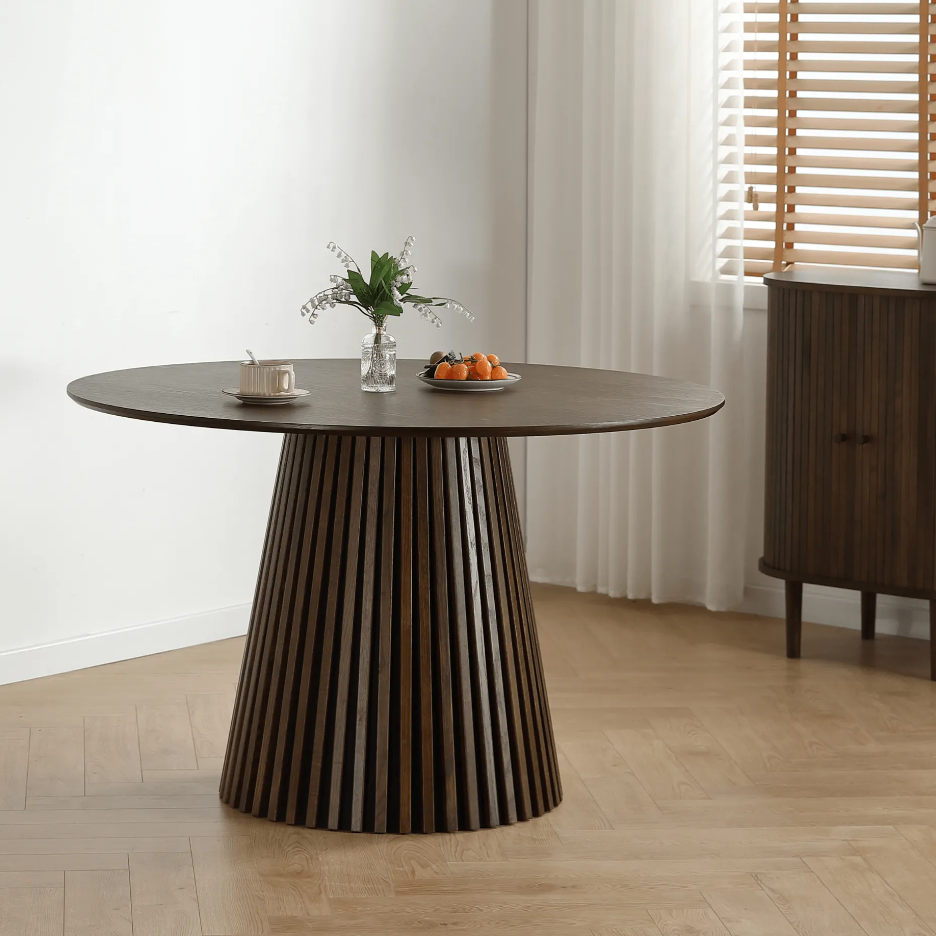 Vores Lewis lamel spisebord i røget egefiner er det ideelle valg for dem, der ønsker at maksimere pladsen i mindre rum uden at gå på kompromis med stil og funktionalitet. Med sit elegante runde design er det perfekt til områder med begrænset plads.