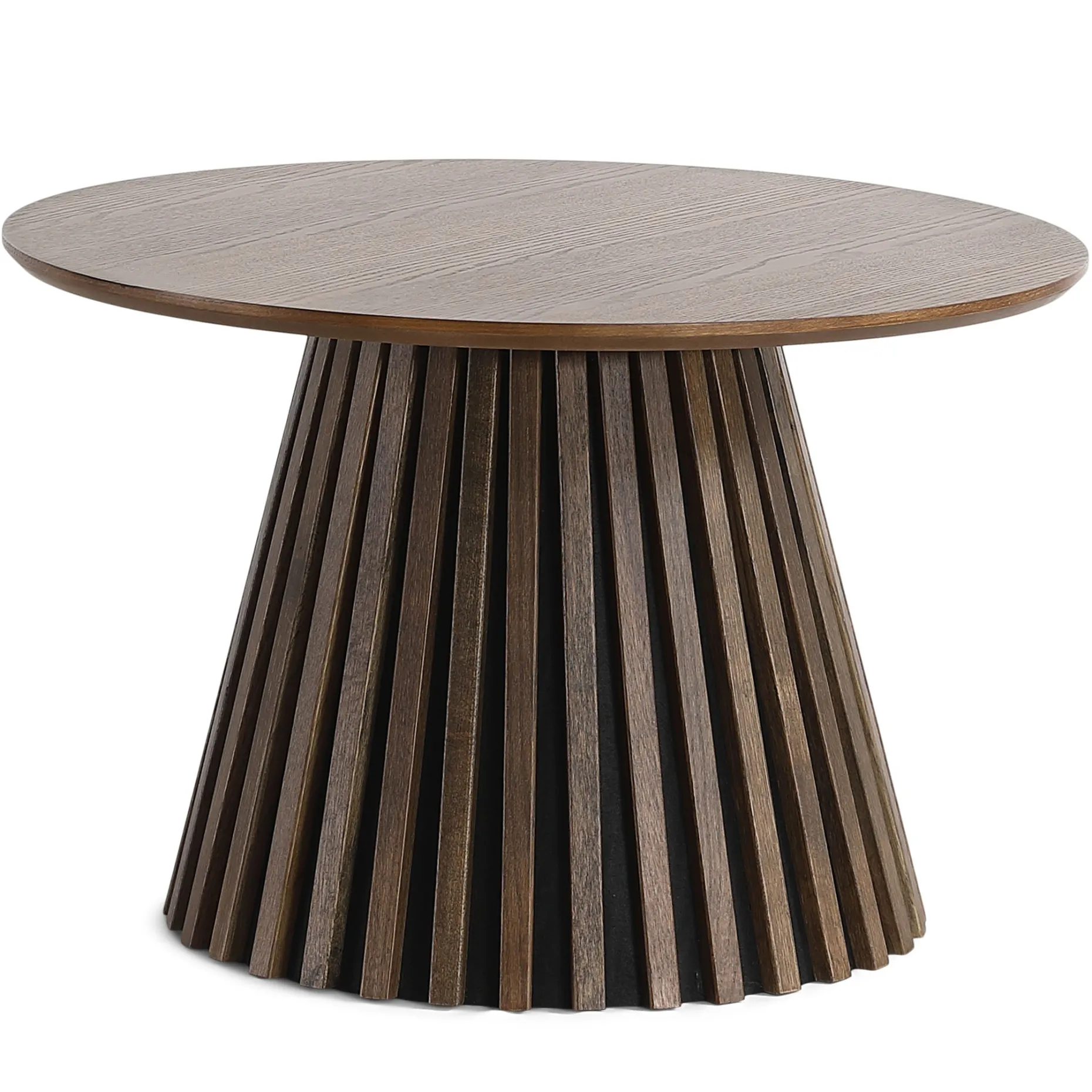 Vores Lewis sofabord i røget eg er det perfekte valg for dem, der søger en kombination af æstetik og funktionalitet i deres stue. Med sin naturlige røgede eg finish og søjlefod lavet af lameller, tilføjer dette bord et strejf af elegance og karakter til enhver indretning.