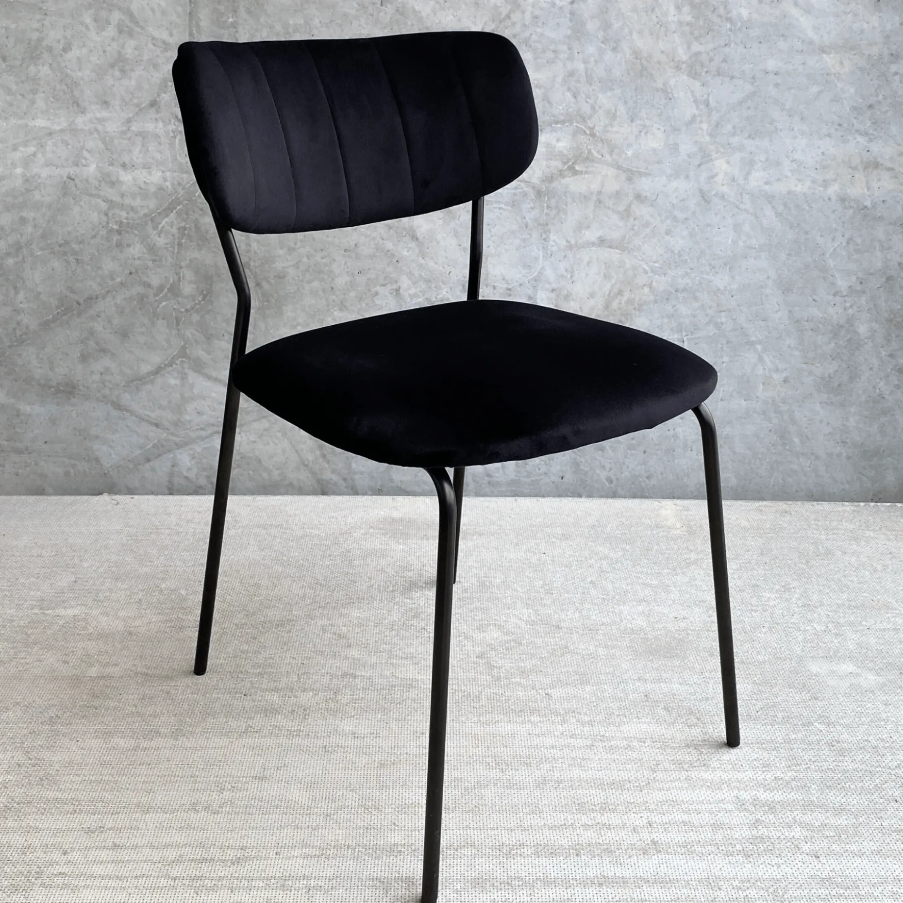 Denne enkle og stilfulde spisebordsstol med sort velour vil give ethvert rum en enkel og moderne følelse. Stolen er lavet af høj kvalitets velour materiale, som giver en blød og luksuriøs følelse, når man sidder på den. Den sorte farve giver en tidløs elegance og passer til enhver indretningsstil.