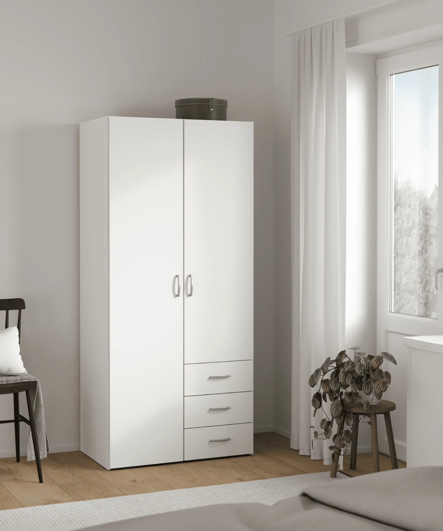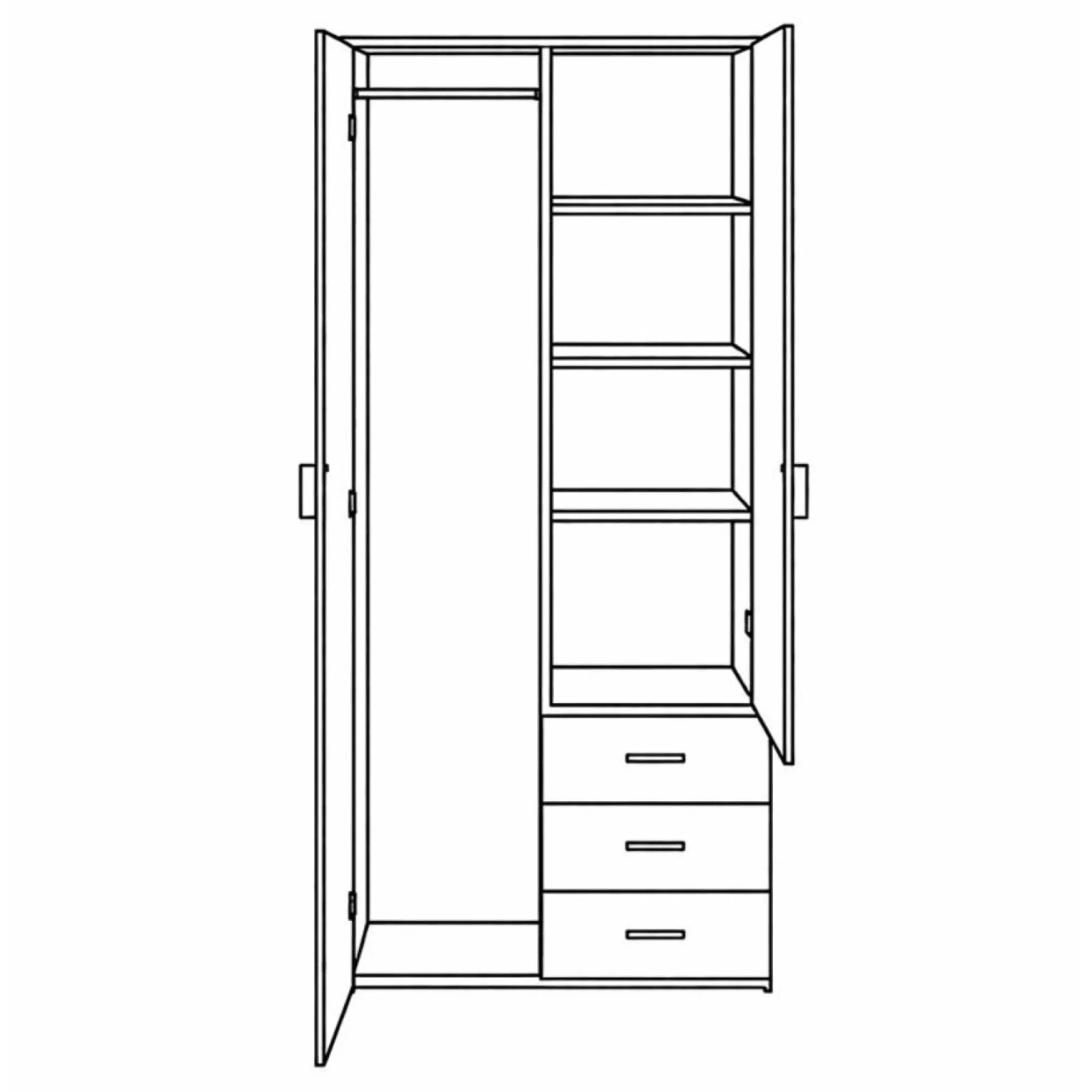 Malia garderobeskab hvid 2 låger 3 skuffer