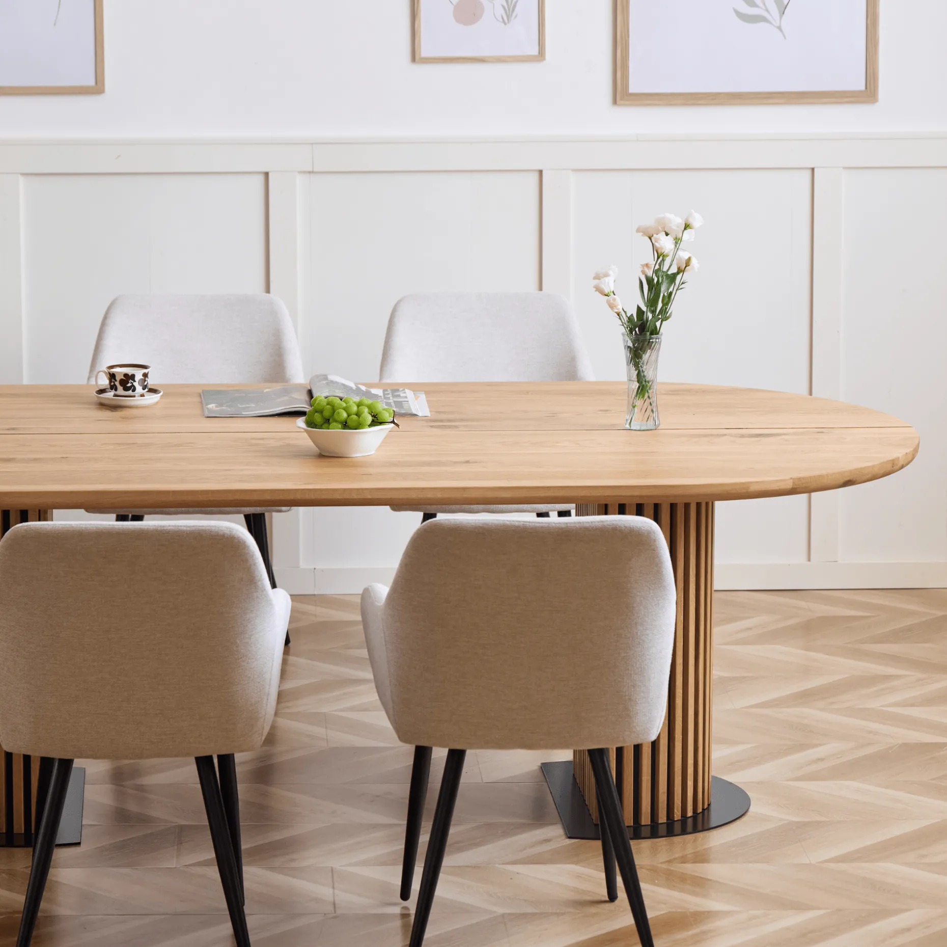 Matteo – Plankebord med lamelfod i olieret/natur massiv eg 240x120x77 cm