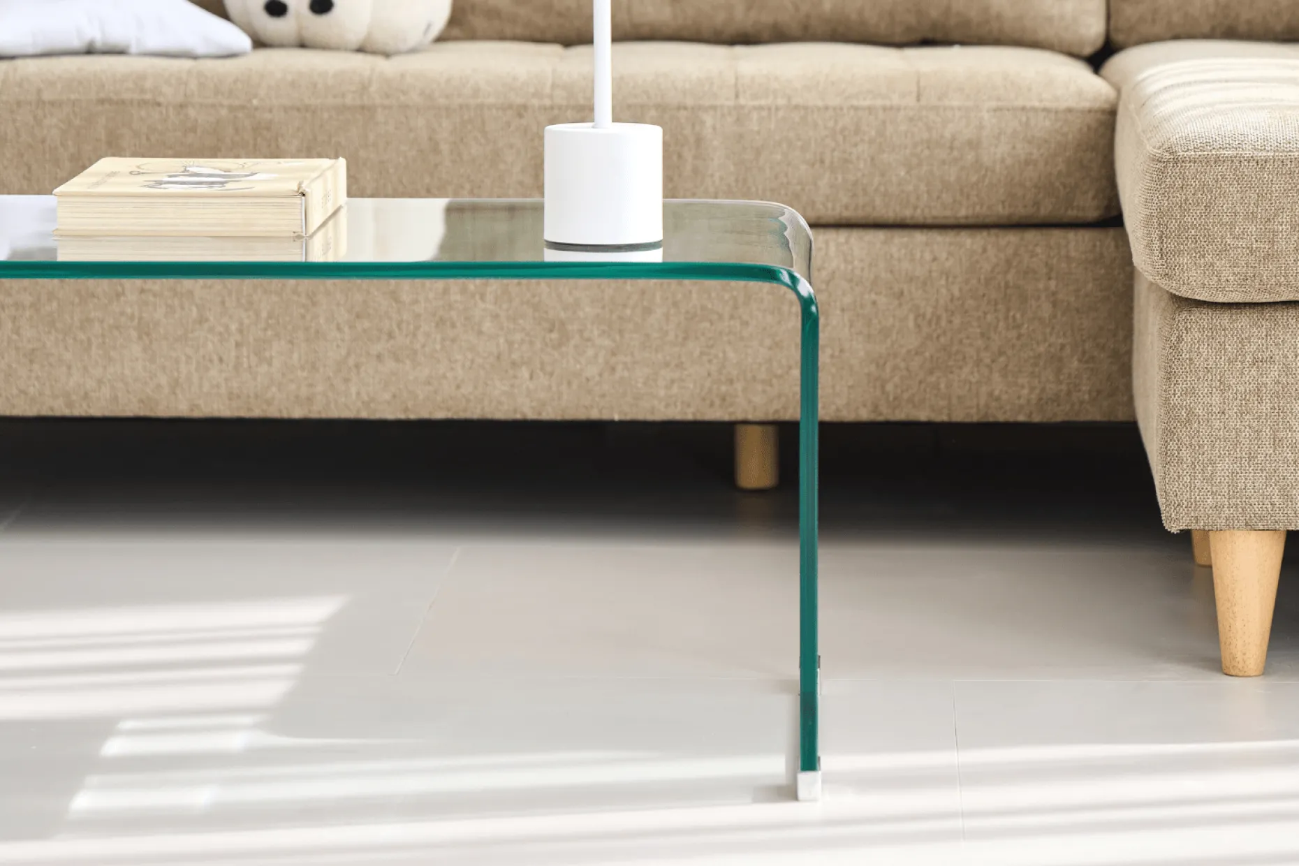 Dette rektangulære sofabord i klart glas er et tidløst valg til den moderne bolig. Bordet er 13 mm tyk og fremstillet af hærdet glas, som er mere modstandsdygtig overfor ridser og temperaturændringer. Det er designet med afrundede hjørner og rene linjer, som giver et let og harmonisk udtryk. Bordet har små beskyttere i krom på fødderne, der både tilfører et stilrent design og beskytter dit gulv mod ridser.