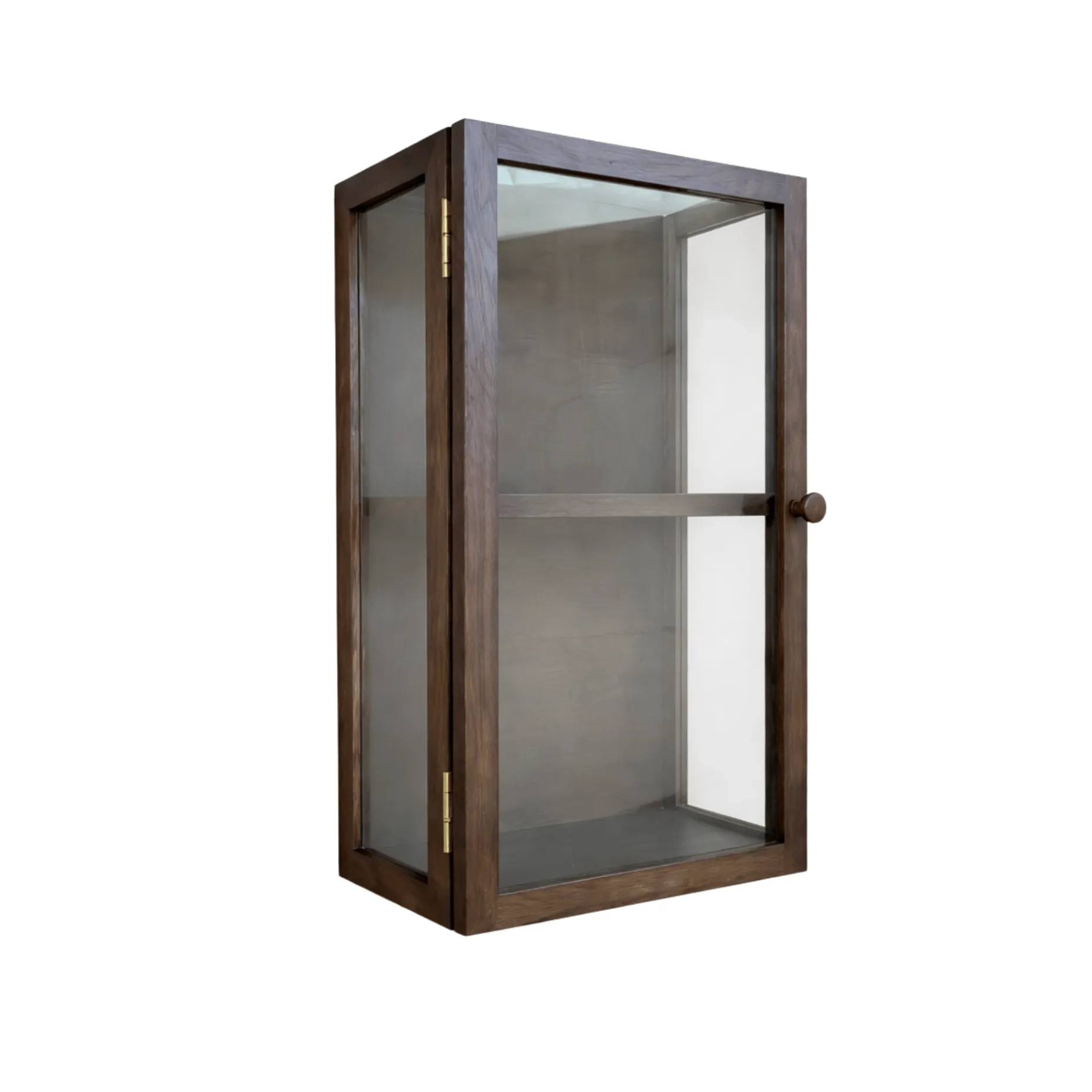 Væghængt vitrineskab i røget eg