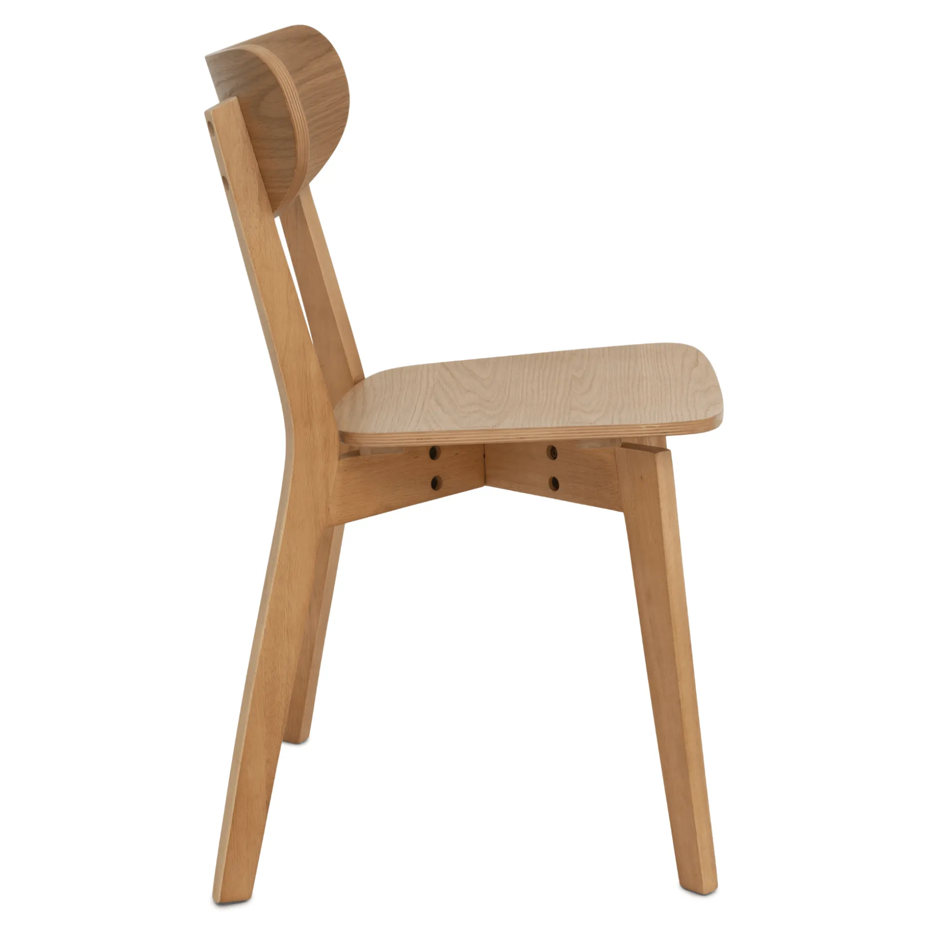 Enkel og tidløs spisebordsstol med let buet ryglæn, der giver ekstra støtte. Stolen er lavet i egefiner og har et klassisk trælook, der passer ind i både moderne og mere traditionelle hjem.
