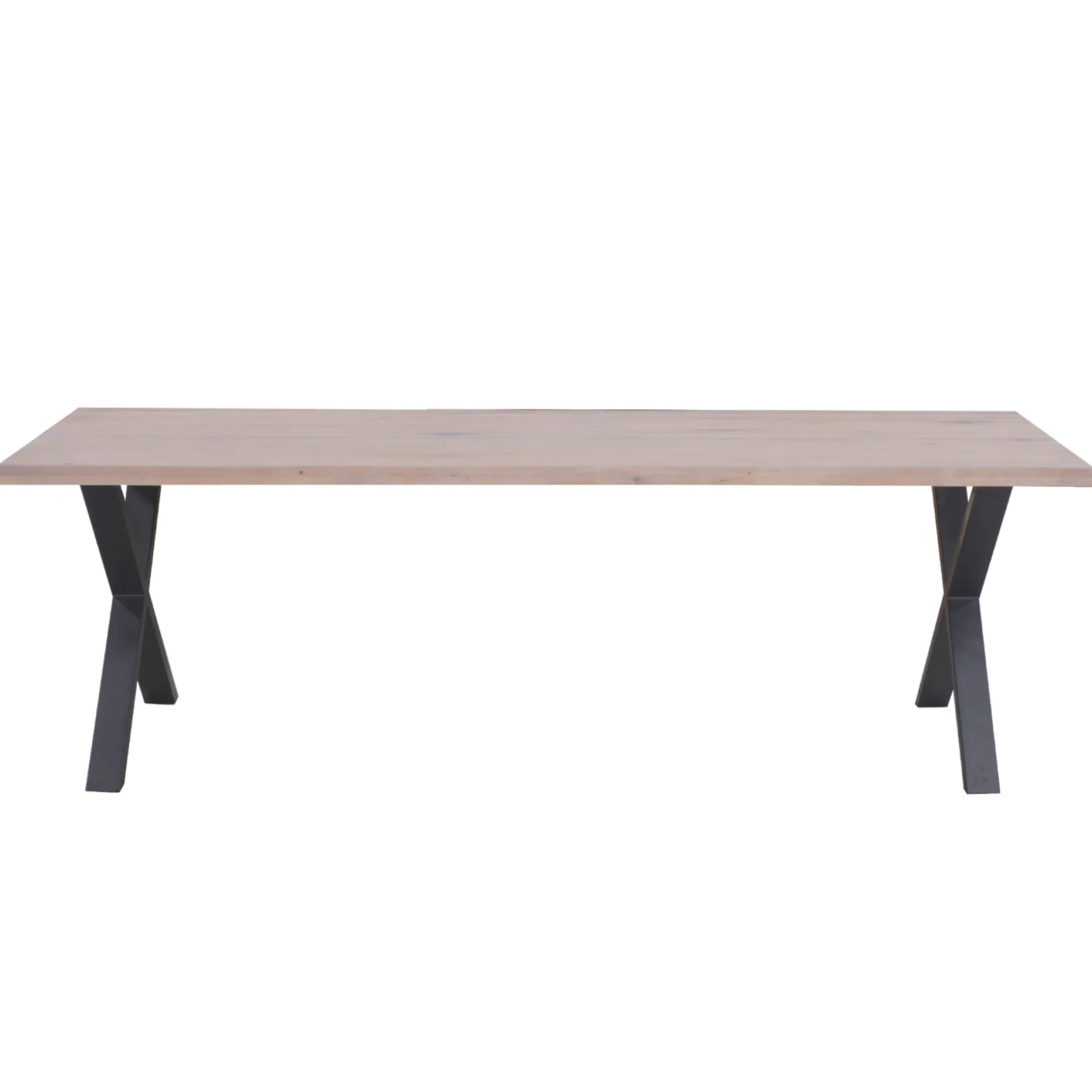 Dette Susan spisebord med 2 planker og sorte krydsben i metal måler 200 cm i længden, hvilket giver plads til at have 3 stole stående på hver side.