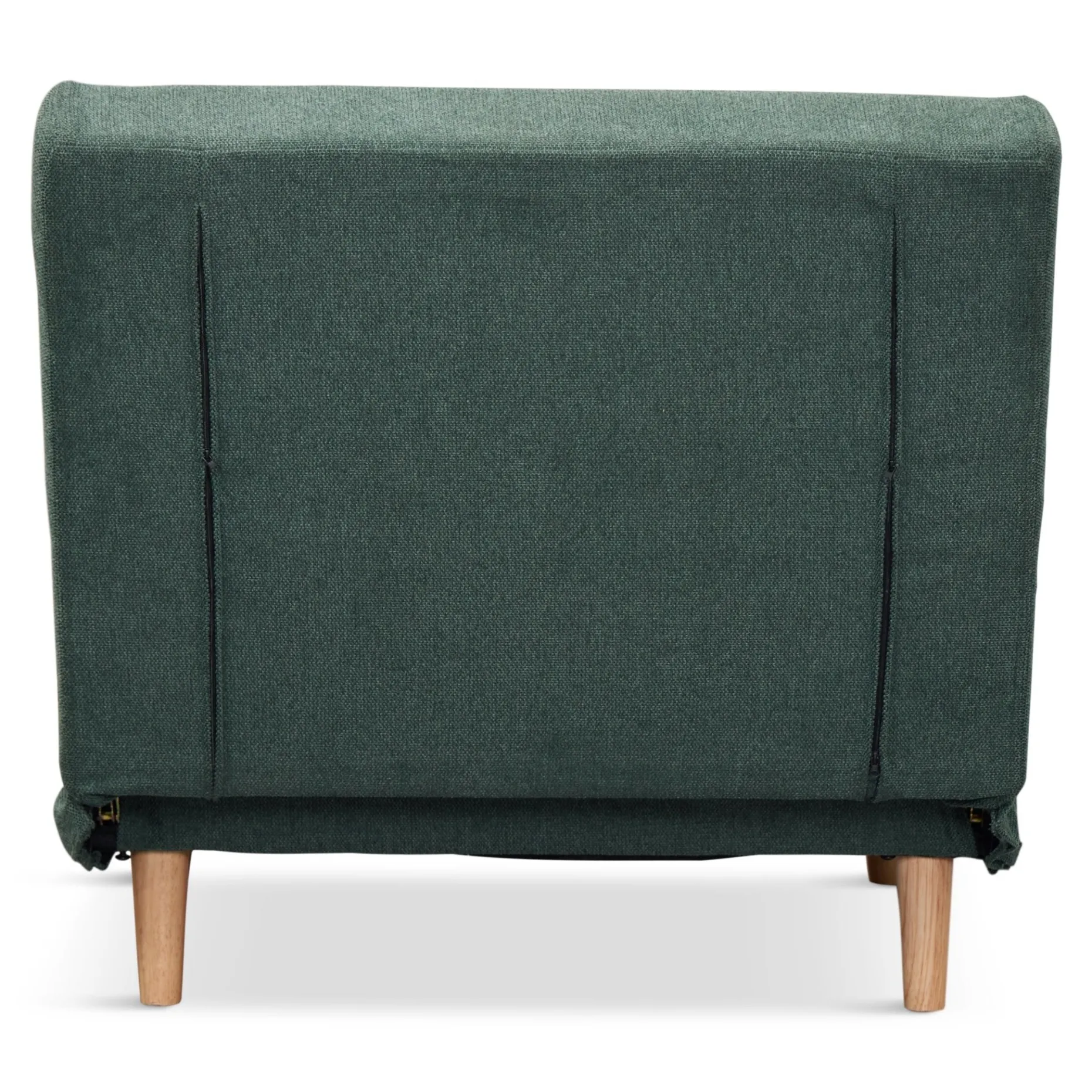 Ryglænet kan indstilles i tre forskellige positioner, så du altid finder den rette vinkel, uanset om du vil læse, slappe af eller sove. Der er skjulte ben i begge ender, som hurtigt foldes ud, når stolen skal bruges som seng.