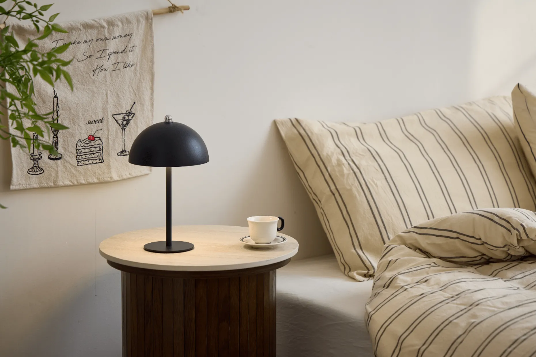 Da lampen er genopladelig, slipper du for ledninger og kan nemt flytte den rundt i hjemmet. Lampen anbefales til indendørs brug.