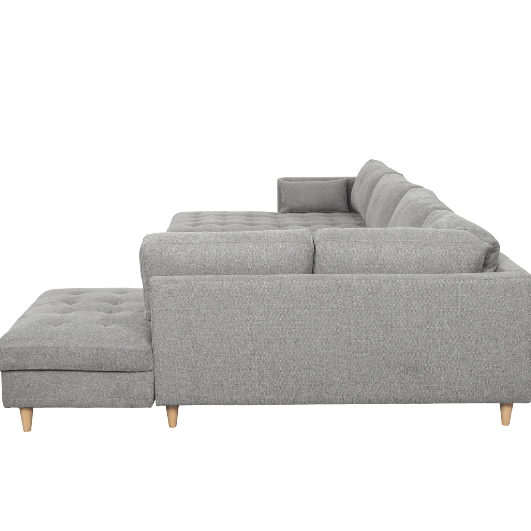En u-formet sofa, der forener stil og komfort på en enestående måde. Med sit indbydende design og luksuriøse bløde grå materiale bliver Brandy det naturlige midtpunkt i ethvert moderne stueområde.