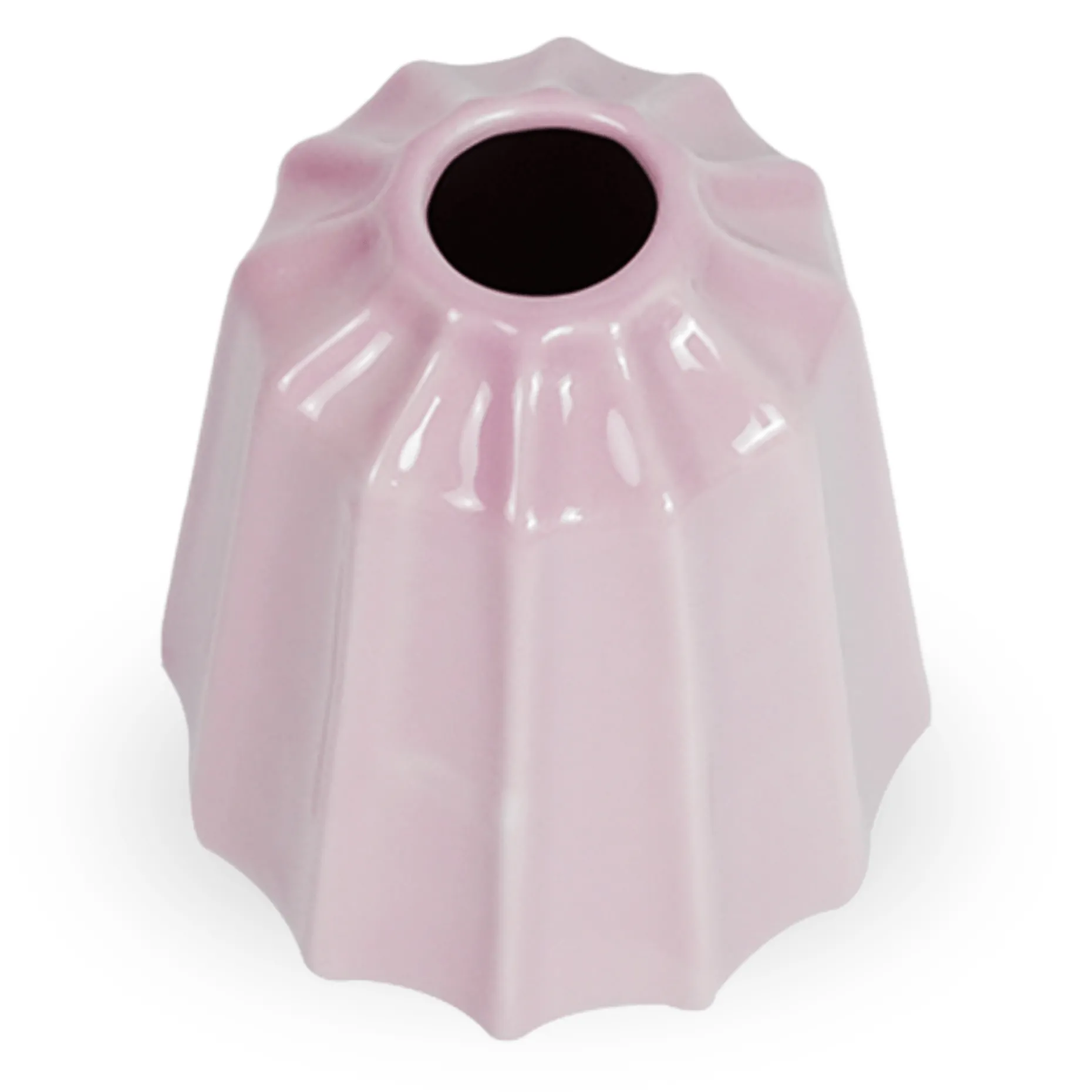 Lyserød vase med facetteret design