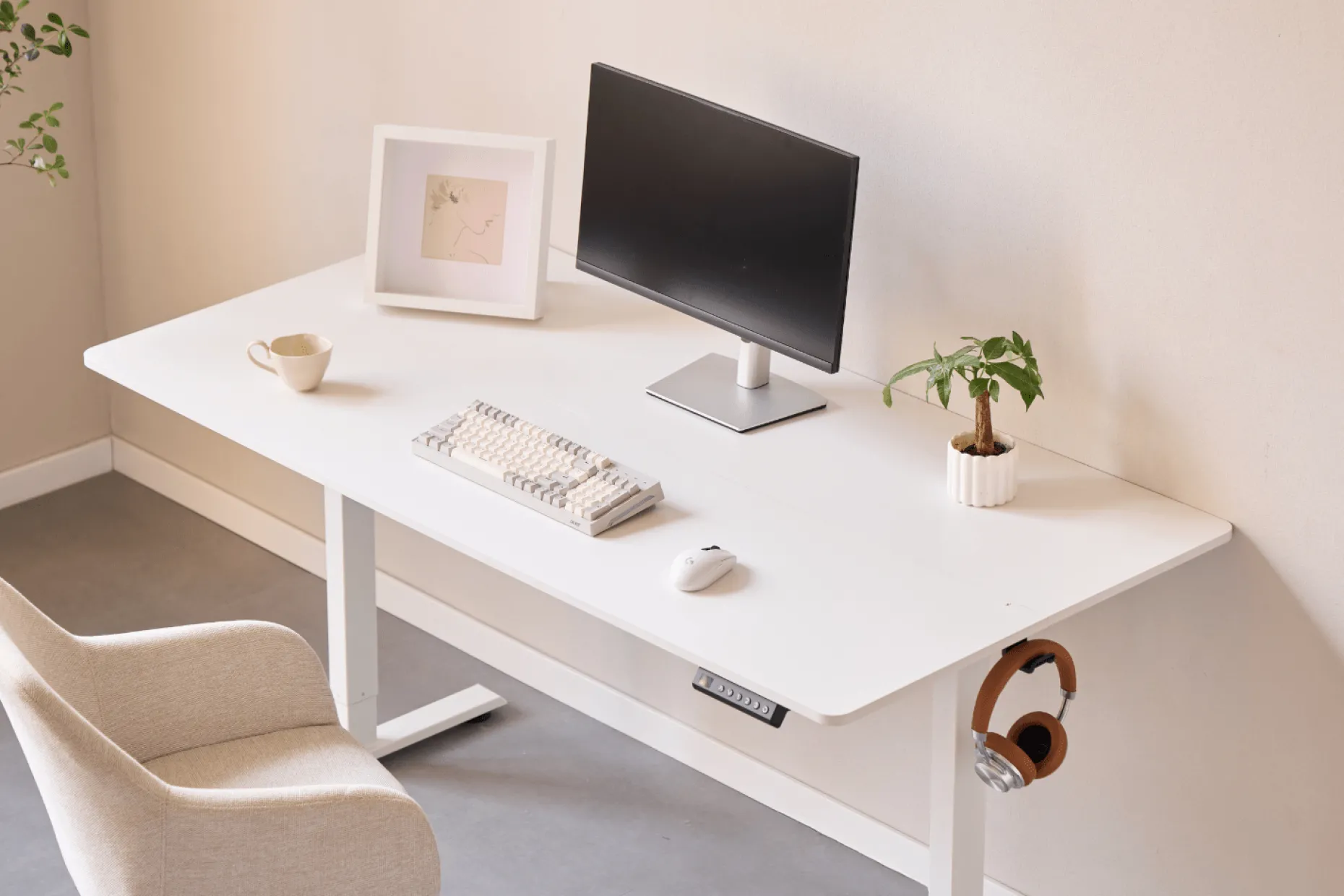 Med den støjsvage elektriske motor kan du nemt justere højden med et tryk på betjeningspanelet. Bordet justeres fra 72 til 117 cm i højden, men har også en memory funktion, hvor den husker dine 3 favorit højder. Bordet hæves og sænkes med 2 cm i sekundet. Bordet er udstyret med et anti-kollision system, som beskytter bordet mod skader ved automatisk at stoppe og køre let tilbage, hvis det registrerer modstand under hævning eller sænkning.