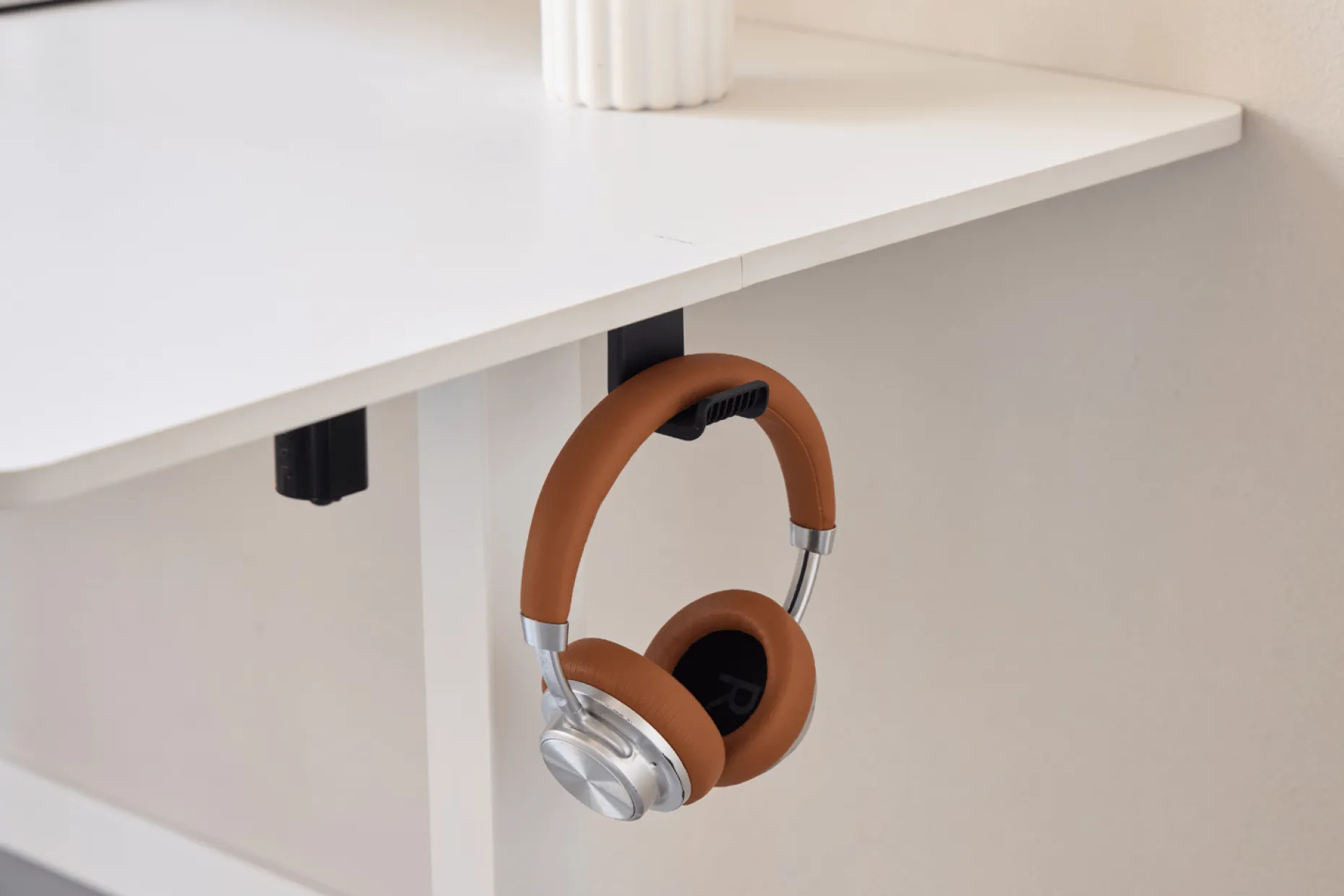 Den stilrene bordplade i sort kunstfiner hviler på en stærk stålramme, som giver et let og moderne udtryk, der passer ind både i hjemmekontoret og på arbejdspladsen. Overfladen er slidstærk, ridsefast og nem at rengøre, så dit bord bevarer sit pæne udseende i mange år.