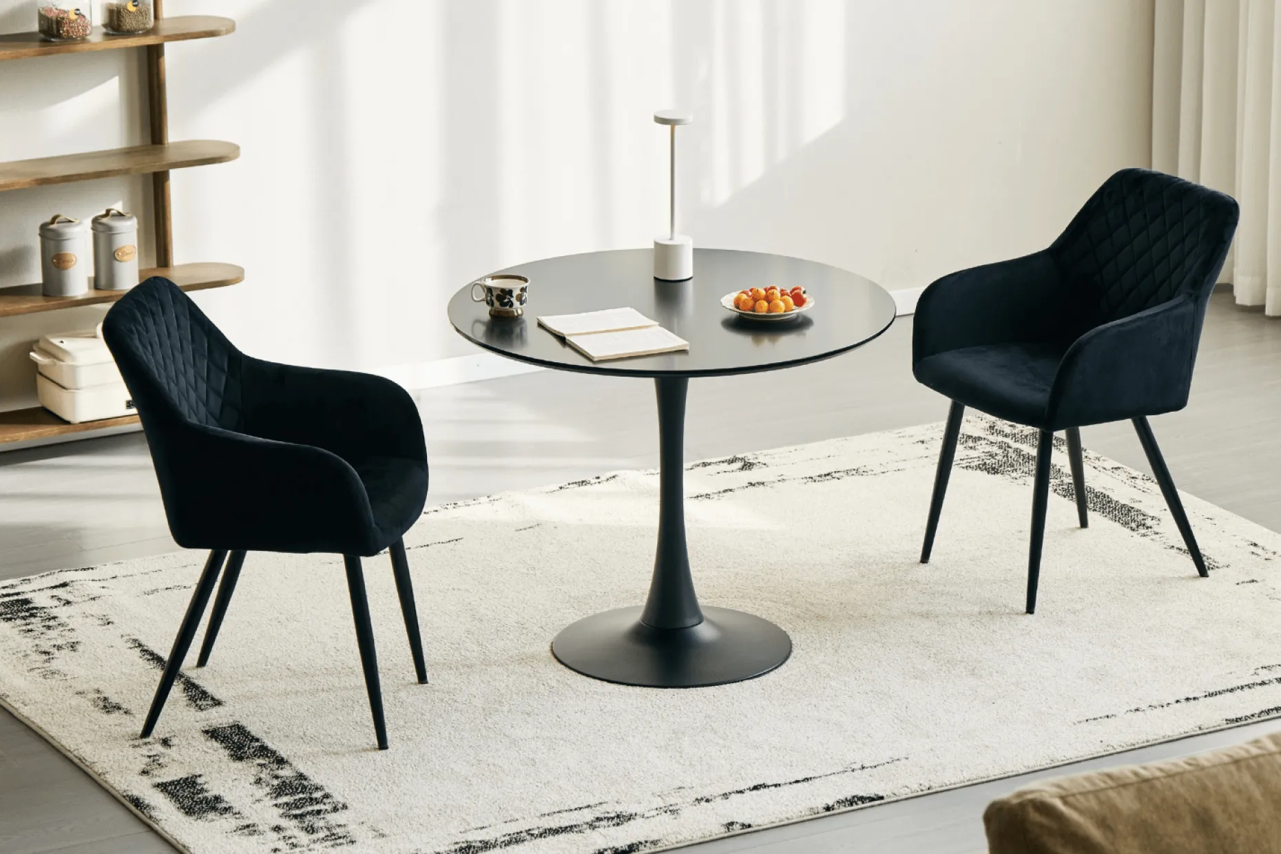 Trompetfoden er både stilfuld og stabil, hvilket sikrer et sikkert og solidt fundament. Bordpladen er lavet af høj kvalitet MDF, som gør den både let at rengøre og modstandsdygtig overfor ridser og pletter, hvilket gør bordet praktisk og holdbart. Dette Diego spisebord passer perfekt til mindre rum og kan rumme op til 4 spisebordsstole.