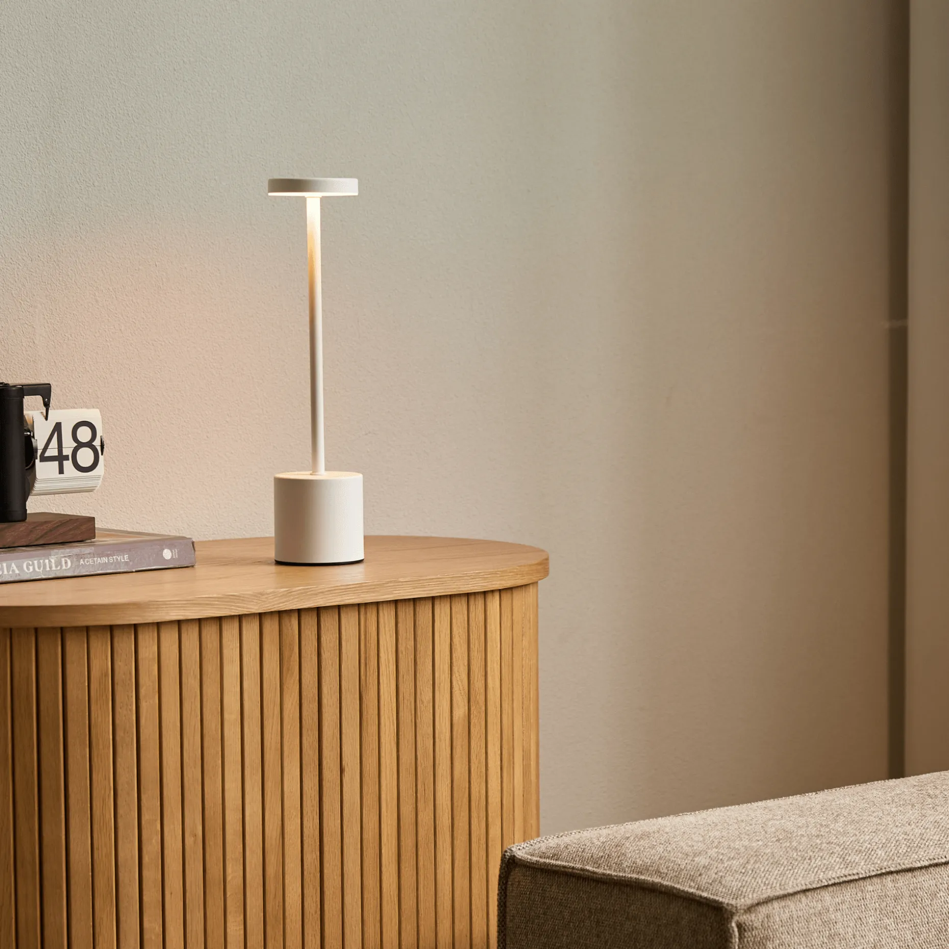 En stilren og moderne bordlampe, der kombinerer funktionalitet med elegant design. Med sit enkle udtryk og bløde lys skaber lampen en hyggelig stemning, uanset hvor du placerer den i stuen, soveværelset, entréen eller på terrassen. Med tre forskellige lysindstillinger, varm, neutral og kold, kan du nemt tilpasse lyset til stemningen.