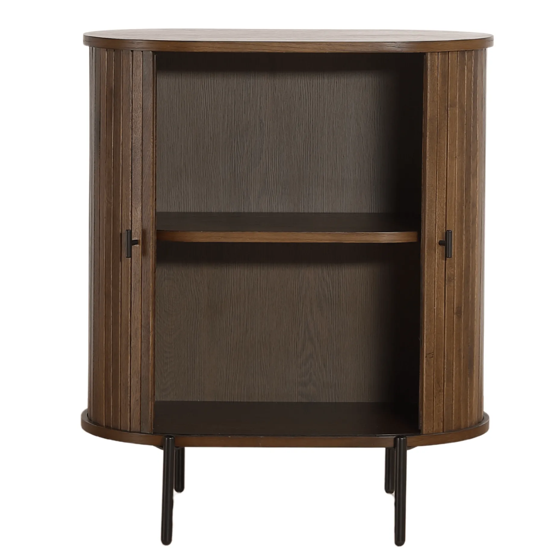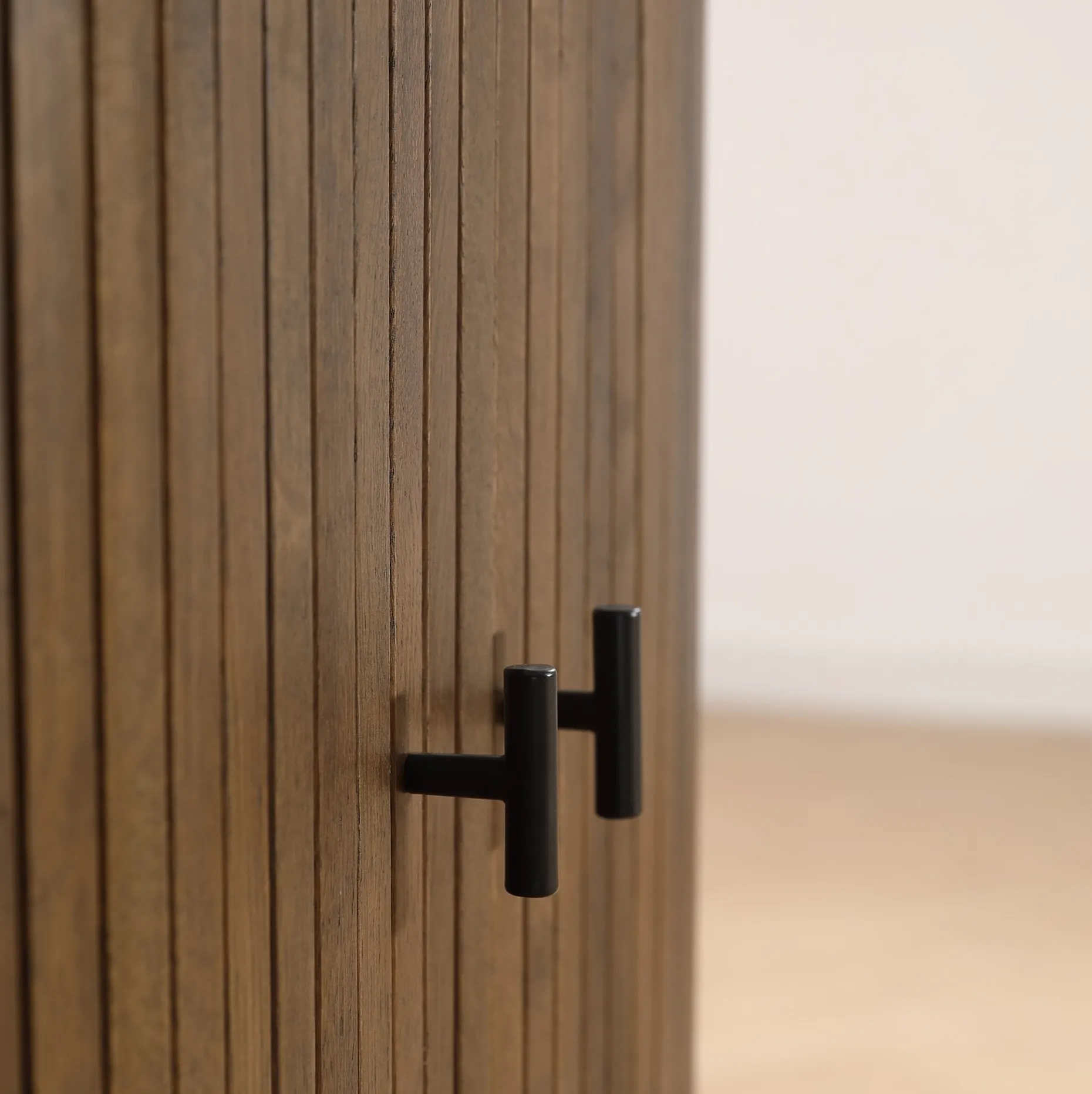 Skabet tilføjer dybde og karakter til ethvert rum. Skabet måler 70x40x85 cm, hvilket gør det ideelt til små rum, hvor opbevaring er nødvendig uden at gå på kompromis med stilen. De røgede jalousi-låger giver en sofistikeret detalje, der fremhæver skabets moderne design. Det mørke træ kombineret med den funktionelle opbevaringsløsning gør dette skab ideelt til dem, der søger en balance mellem funktionalitet og kontrast.
