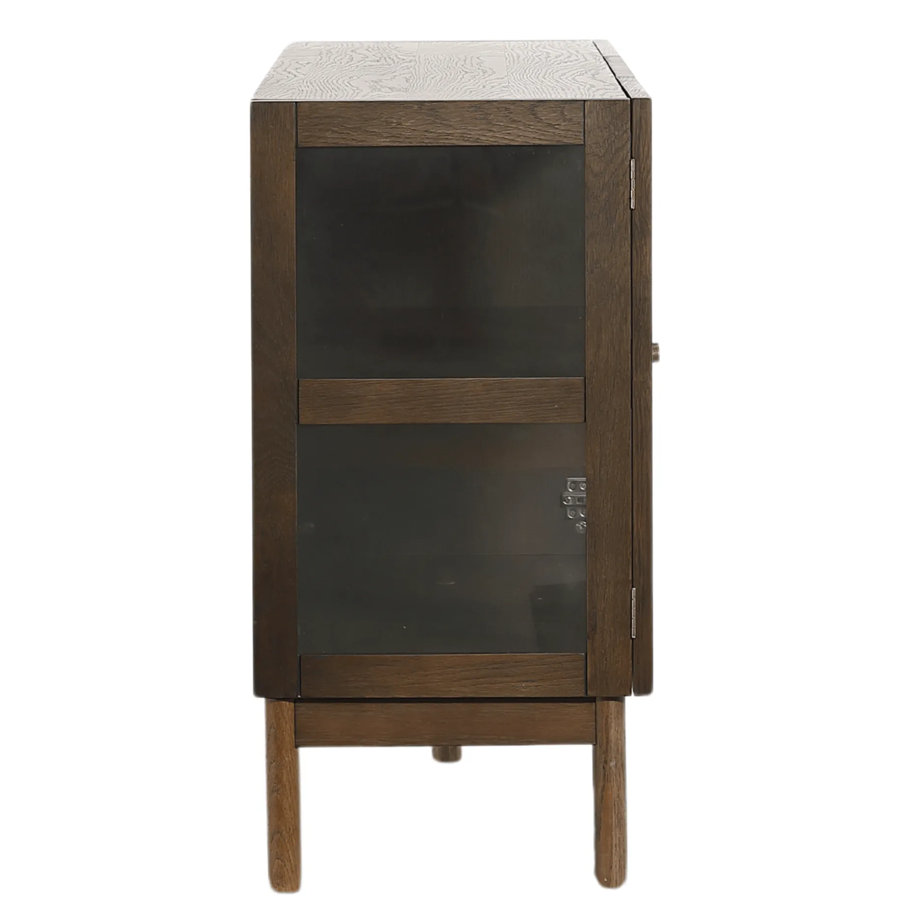 Havana vitrineskabet i røget eg er en flot og praktisk løsning til opbevaring af alt fra glas og porcelæn til dine yndlingspynteting. De tre glaslåger giver et godt overblik over indholdet, mens magnetlukningen sørger for, at lågerne altid lukker ordentligt. Skabet er lavet i røget egetræ, som tilfører varme og karakter til rummet. Med sine mål på 80 x 40 x 140 cm passer det godt ind i både stuen og spisestuen. Det enkle og tidløse design gør, at skabet nemt kan passe ind i alle indretninger.