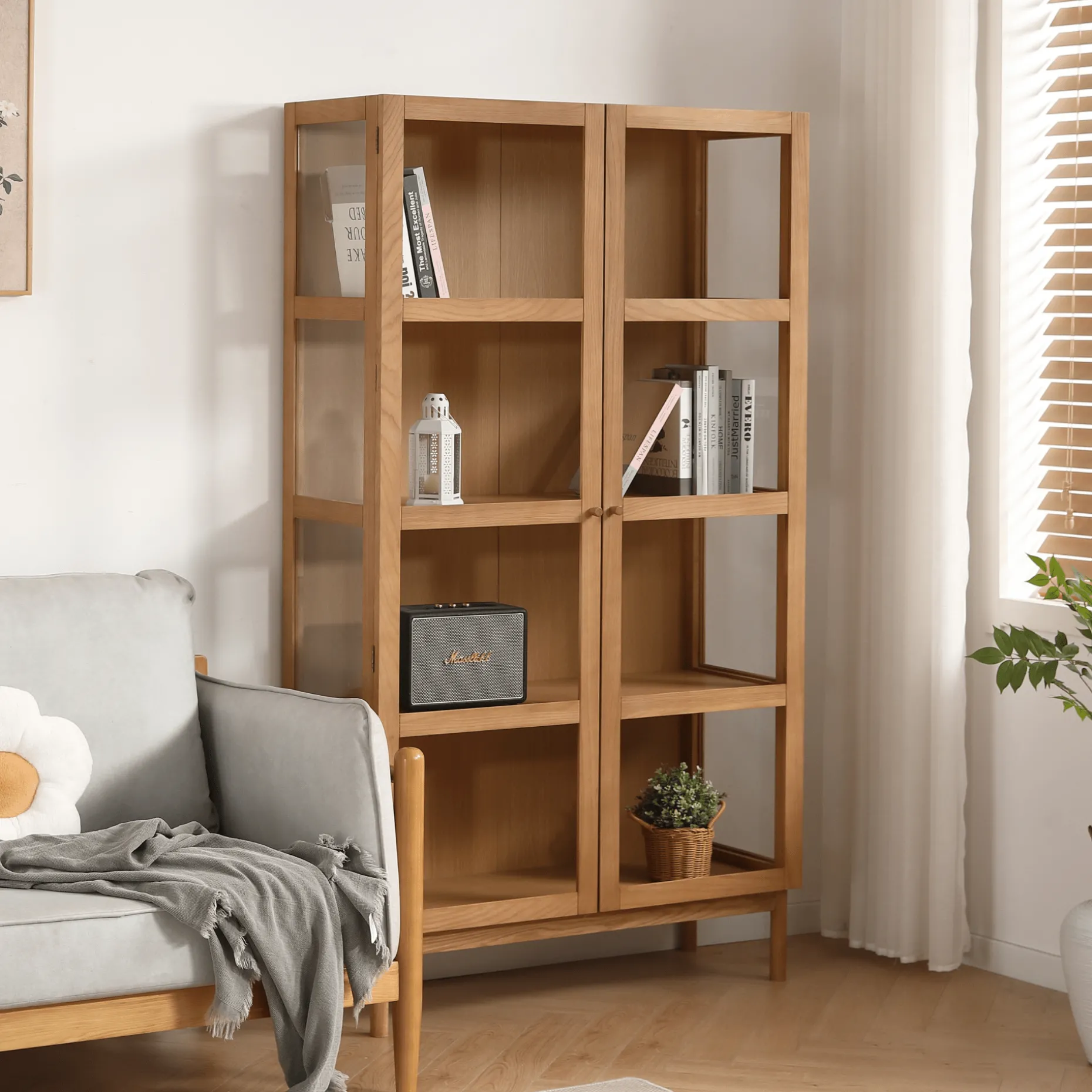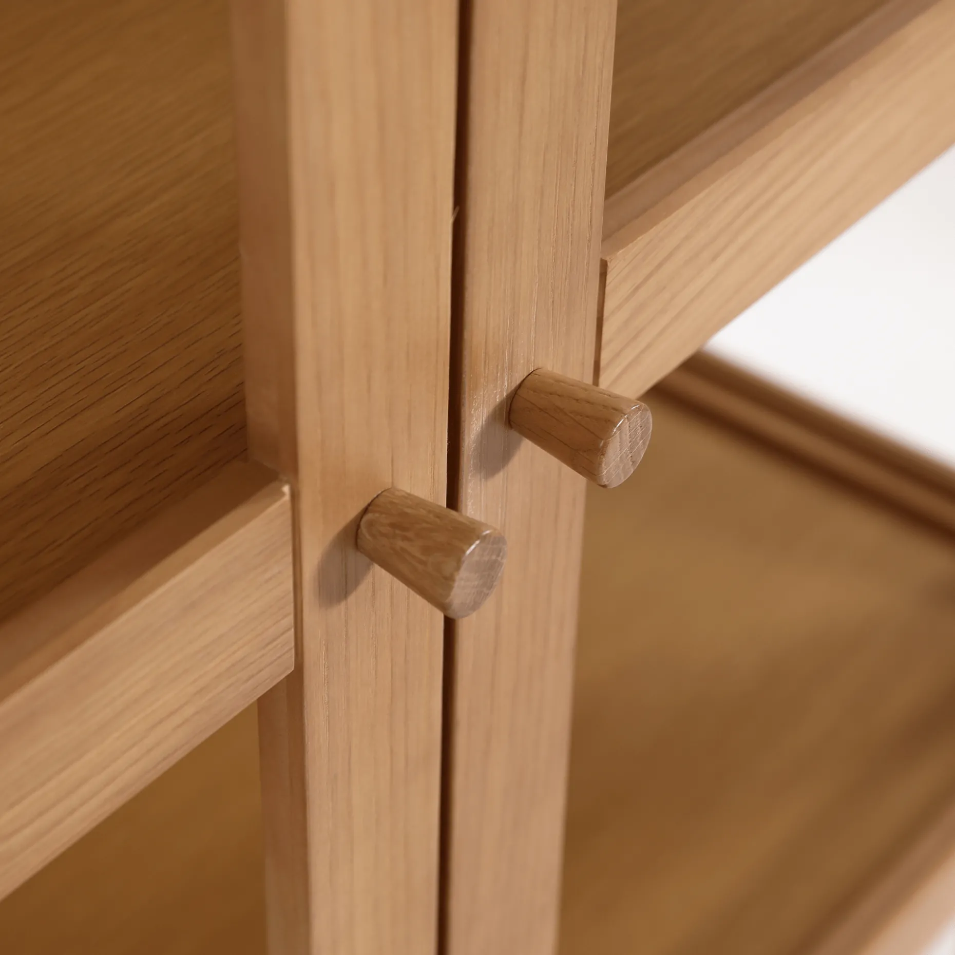 Elegant vitrineskab i naturligt trælook
