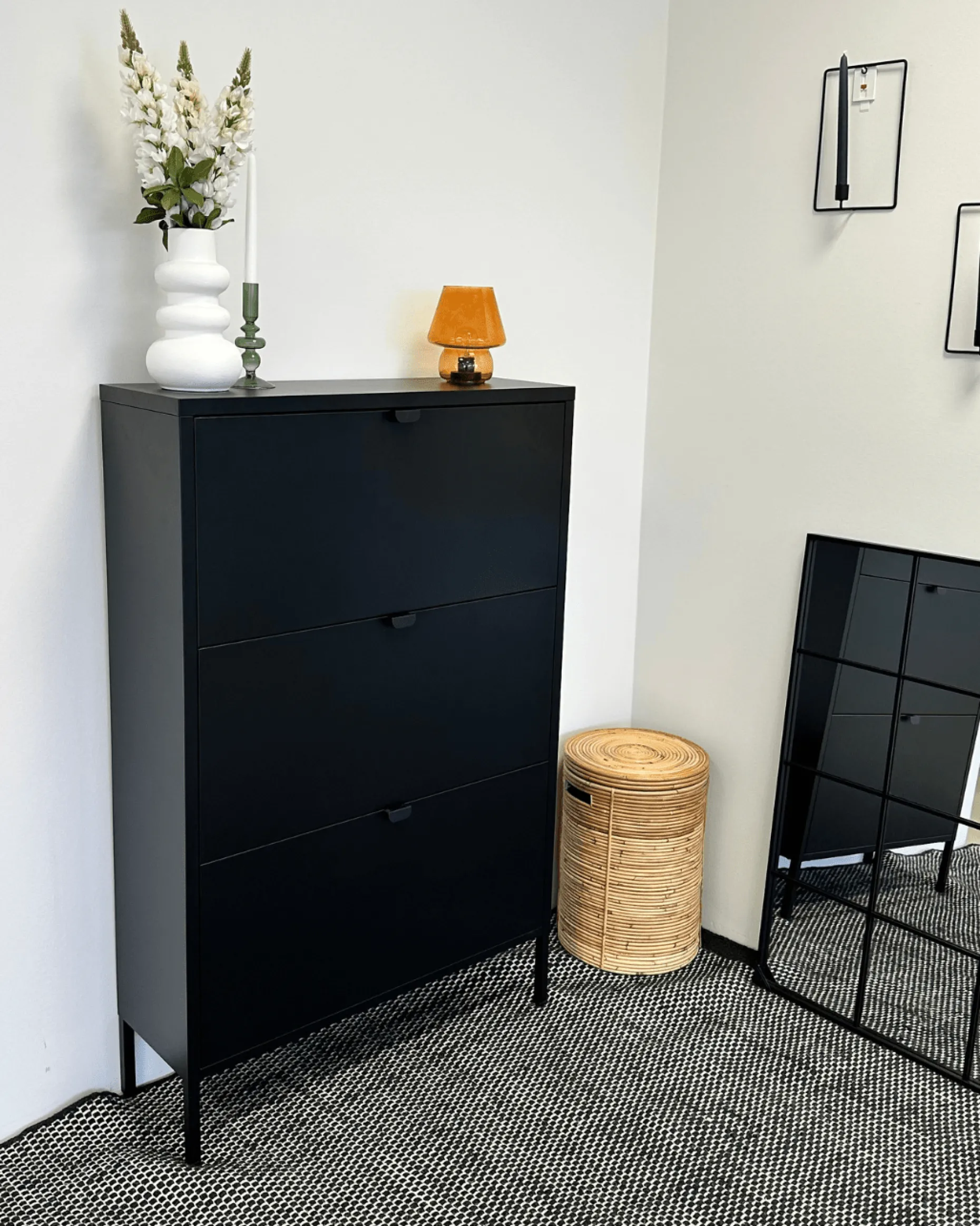 Ved Herman Skoskab med 3 rum har du mulighed for at få et godt overblik i din skosamling i enkelt og stilrent design, som passer sammen med resten af Herman serien. Dybden af Skoskabet giver god plads til opbevaring af flere forskellige typer sko. Hvert rum er opdelt i to, hvilket giver god mulighed for at skille rene og beskidte sko eller anvende det ene rum til andet praktisk som: sutsko, huer, handsker, halstørklæde osv. På toppen af skabet kan du style med planter og pynt eller bruge pladsen til at lægge alle dine nødvendige sager, som nøgler, pung mm., fra dig, når du kommer hjem. Skabet er med tre rum, og der er plads til 18 par sko.