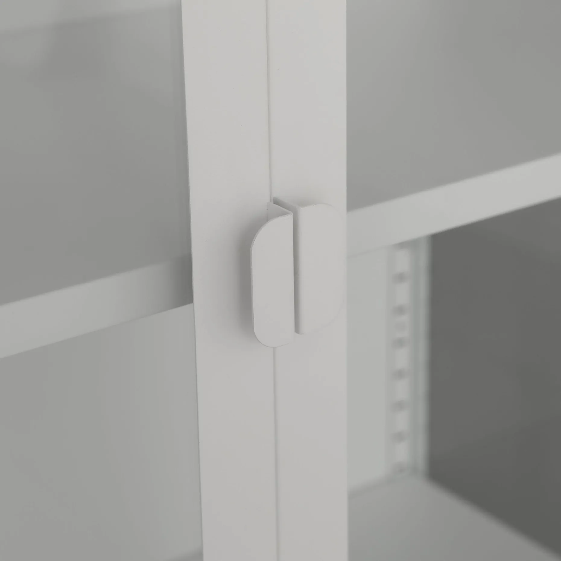 Vitrineskabet er udstyret med 3 hylder, der giver plads til flere genstande og holder dem organiseret. Hver hylde er stærk nok til at bære vægten af tunge genstande og kan nemt justeres for at imødekomme genstande af forskellige størrelser. Den åbne konstruktion giver en let adgang, hvilket gør det nemt at arrangere og reorganisere dine udstillede genstande..
