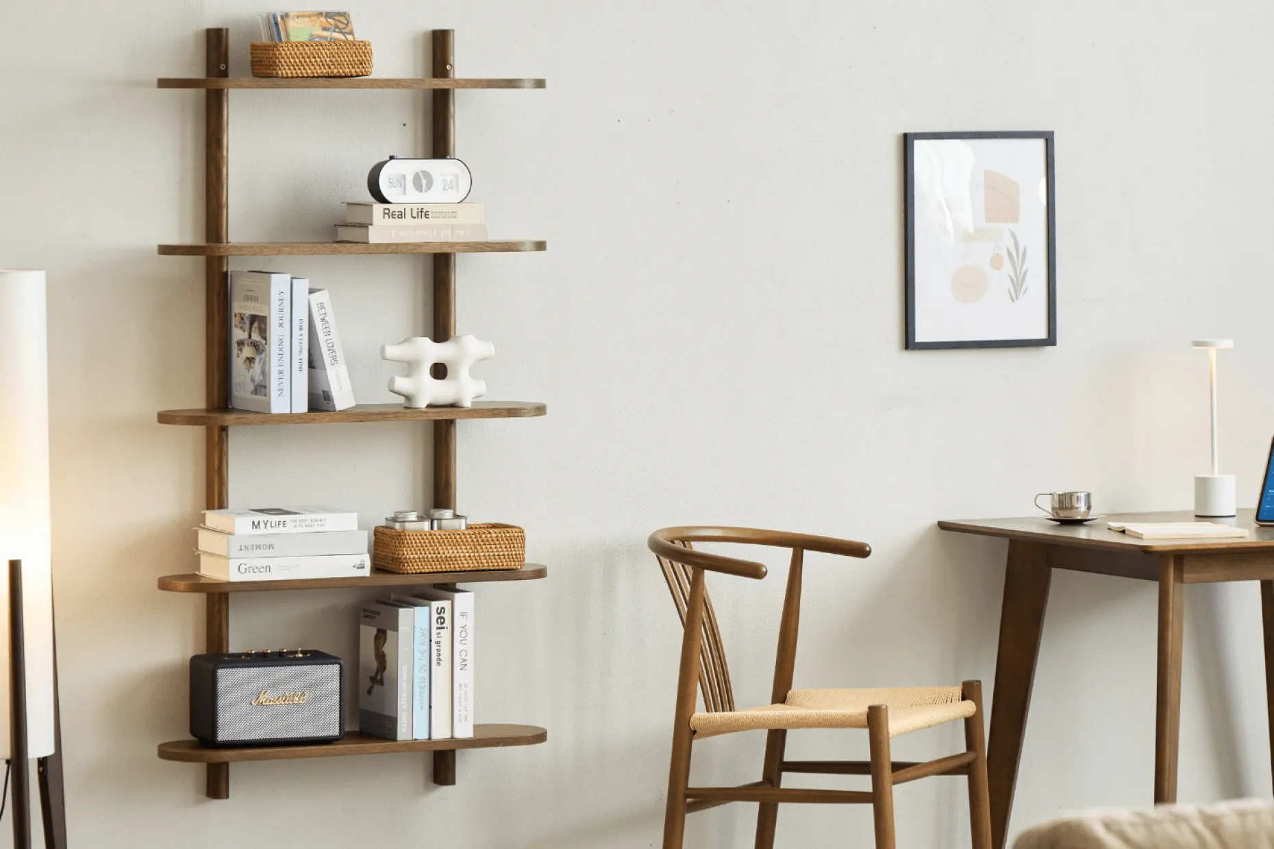 Skab et elegant og roligt udtryk i hjemmet med Juliet væghylde. De fem rummelige hylder giver dig god plads til at udstille dine yndlingsdekorationer, bøger og billeder, mens det minimalistiske design med bløde, afrundede hjørner og den naturlige egetræsoverflade tilfører varme og karakter til rummet. Juliet væghylde kombinerer funktionalitet og æstetik, perfekt til dig, der ønsker et enkelt og stilrent hjem.