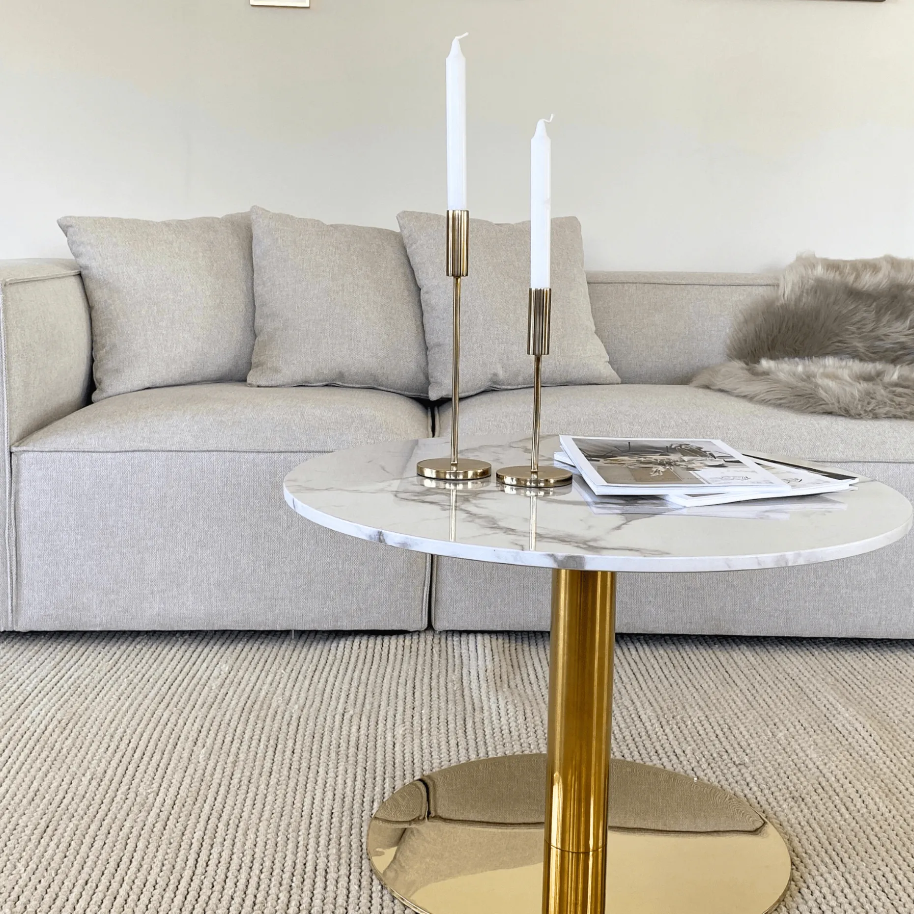 Lazio sofabordet i hvid marmor look med guld ben