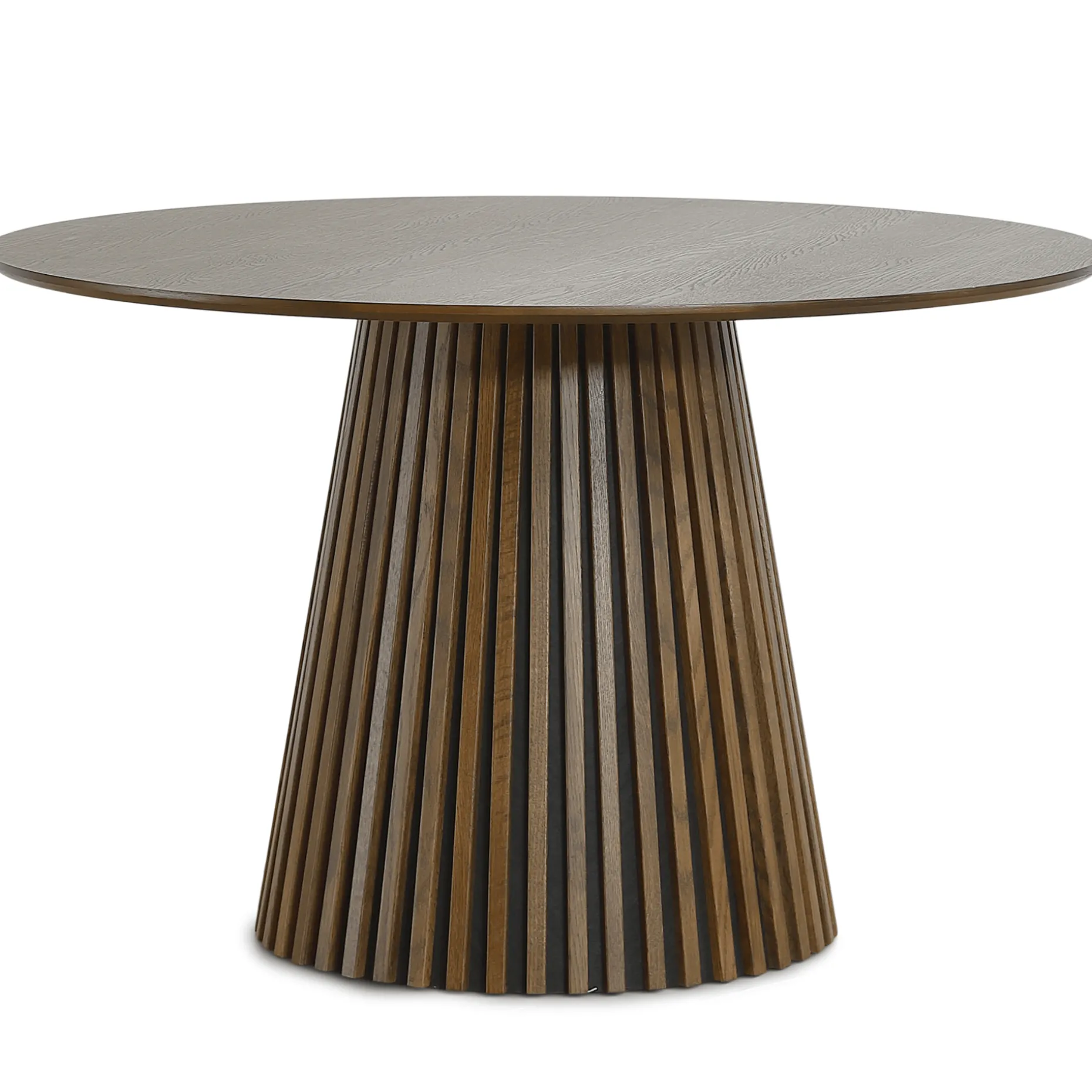 Vores Lewis lamel spisebord i røget egefiner er det ideelle valg for dem, der ønsker at maksimere pladsen i mindre rum uden at gå på kompromis med stil og funktionalitet. Med sit elegante runde design er det perfekt til områder med begrænset plads.