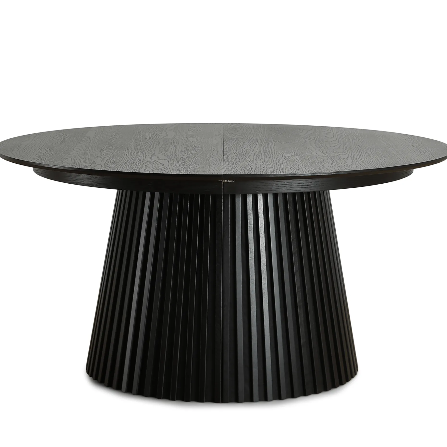 Har du brug for et bord, der passer godt til mindre rum uden at fylde for meget i hverdagen, samtidig med at der stadig er god plads til gæster? Så er Lewis lamel spisebord i sort egefiner det perfekte valg. Dette runde bord er skræddersyet til rum, hvor pladsen er knap, men udtrækket giver dig alligevel rig mulighed for at byde flere velkommen.