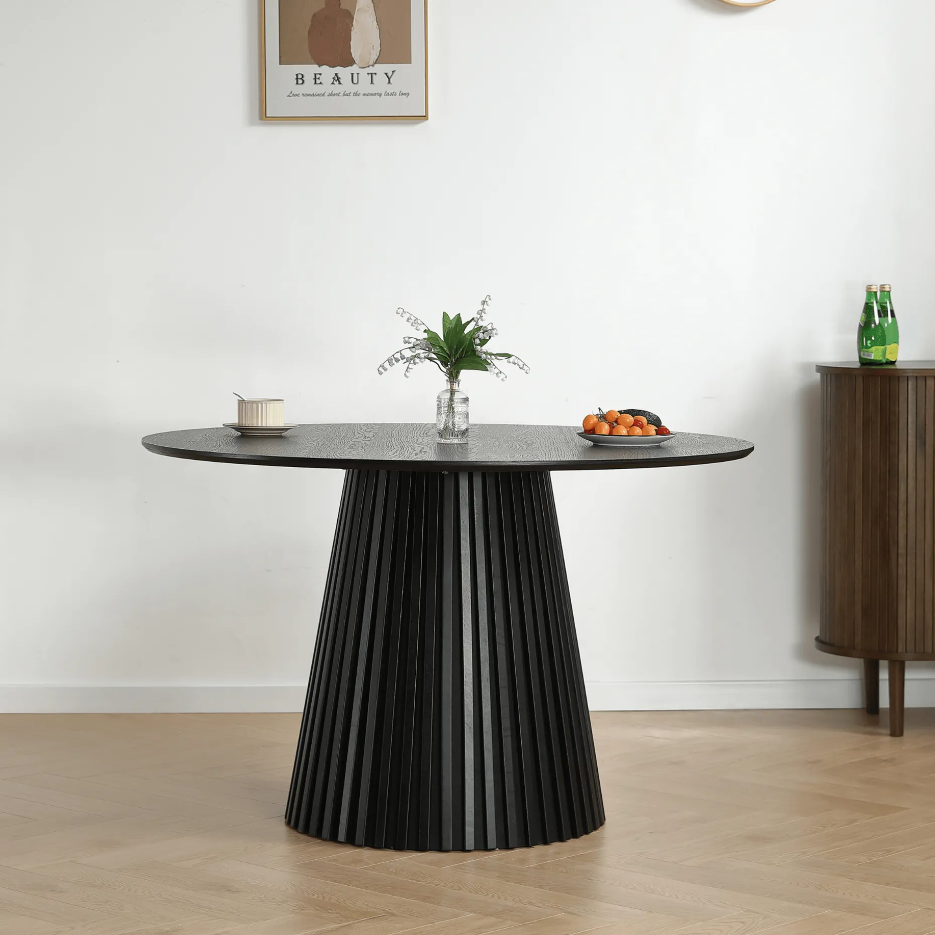 Har du brug for et bord, der passer godt til mindre rum, samtidig med at der stadig er god plads til gæster? Så er Lewis lamel spisebord i sort egefiner det perfekte valg. Dette runde bord er skræddersyet til rum, hvor pladsen er knap.