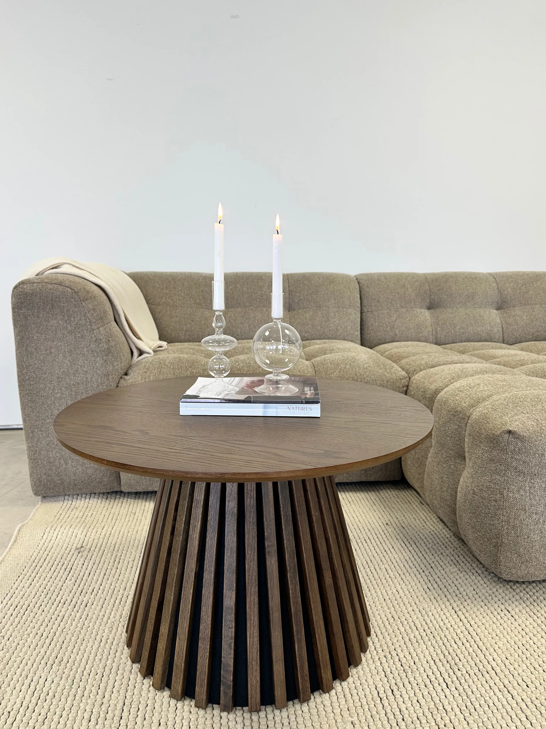 Uanset om det bruges til at vise dekorative genstande, holde kaffekopper eller som et sted at hvile fødderne, vil vores Lewis sofabord i røget eg med søjlefod i lameller være en værdsat tilføjelse til enhver hjemmeindretning.