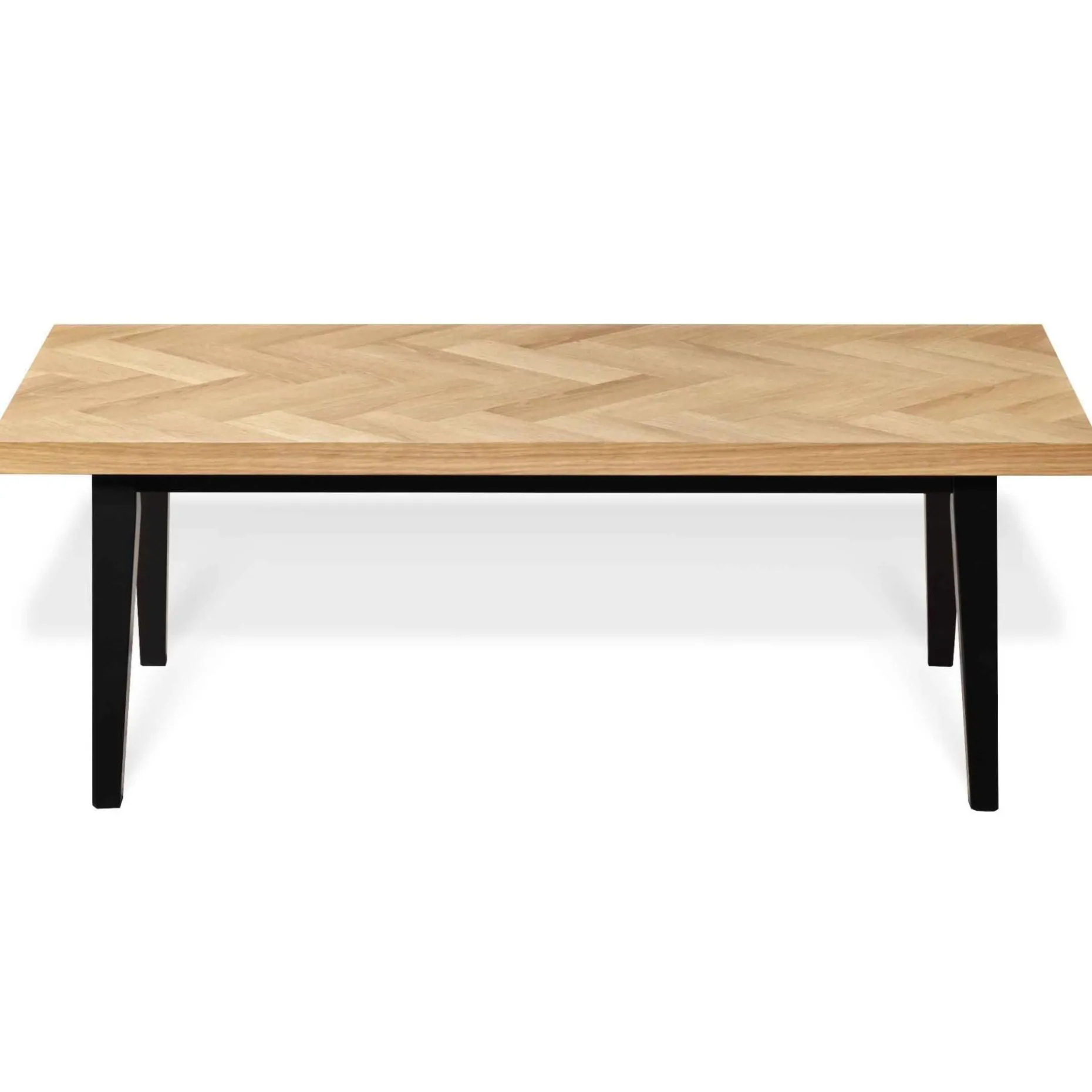 | Materiale | Bordplade: MDF og lakeret egefiner i sildebensmønster Ben: Sortmalet træ |