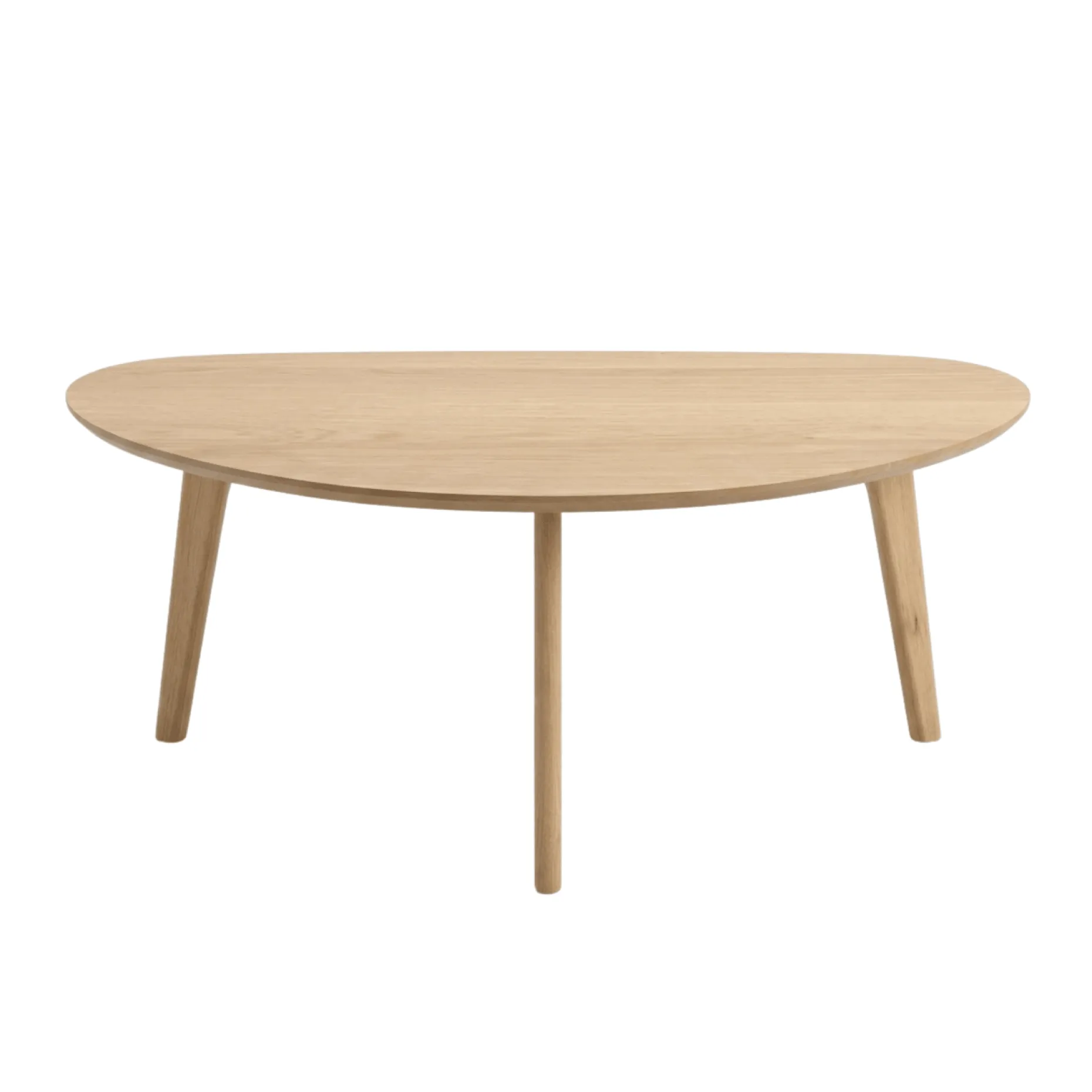 Dette sofabord har et enkelt og roligt udtryk, der passer godt ind i de fleste stuer. Den organiske, afrundede bordplade giver designet et blødt og moderne look.